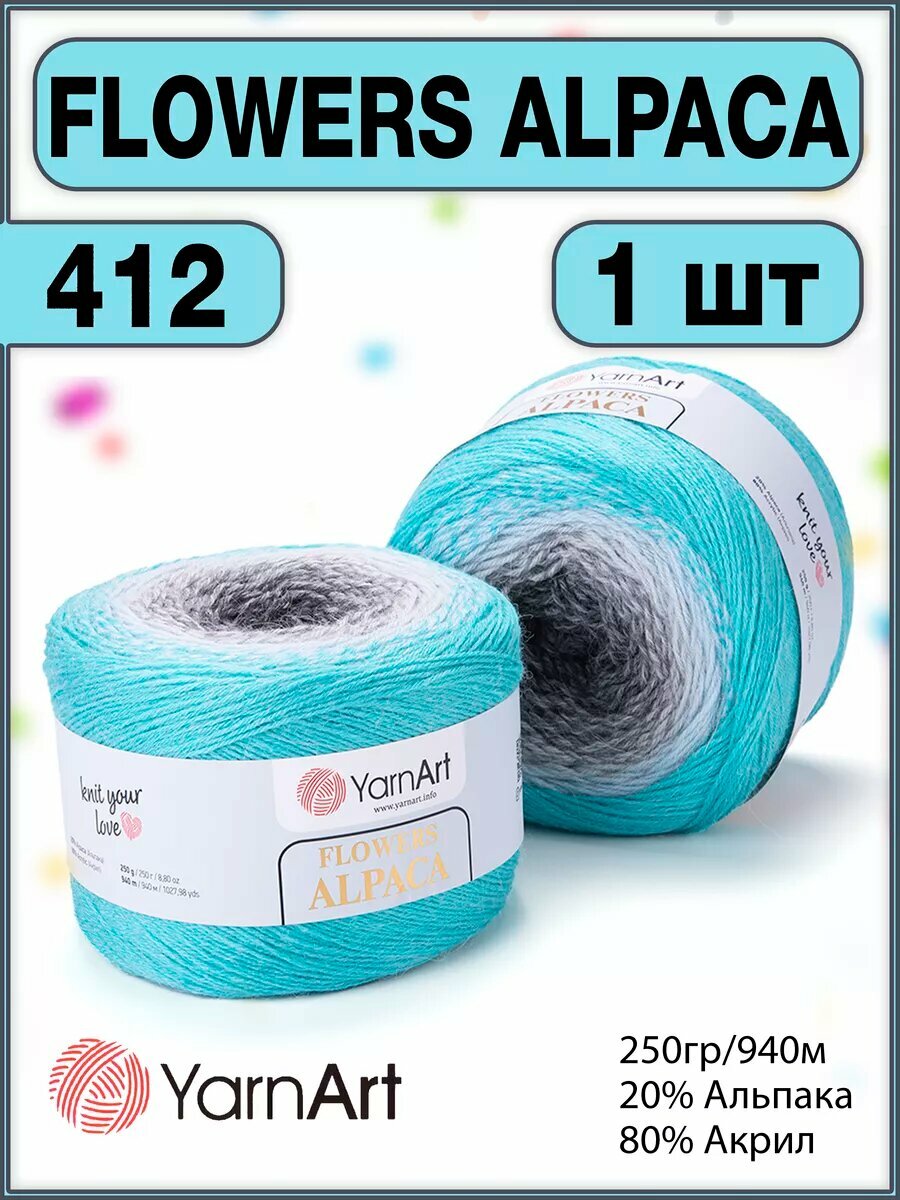 Пряжа для вязания YarnArt Flowers Alpaca, цвет 409, 250г, 940м, 2шт/упак