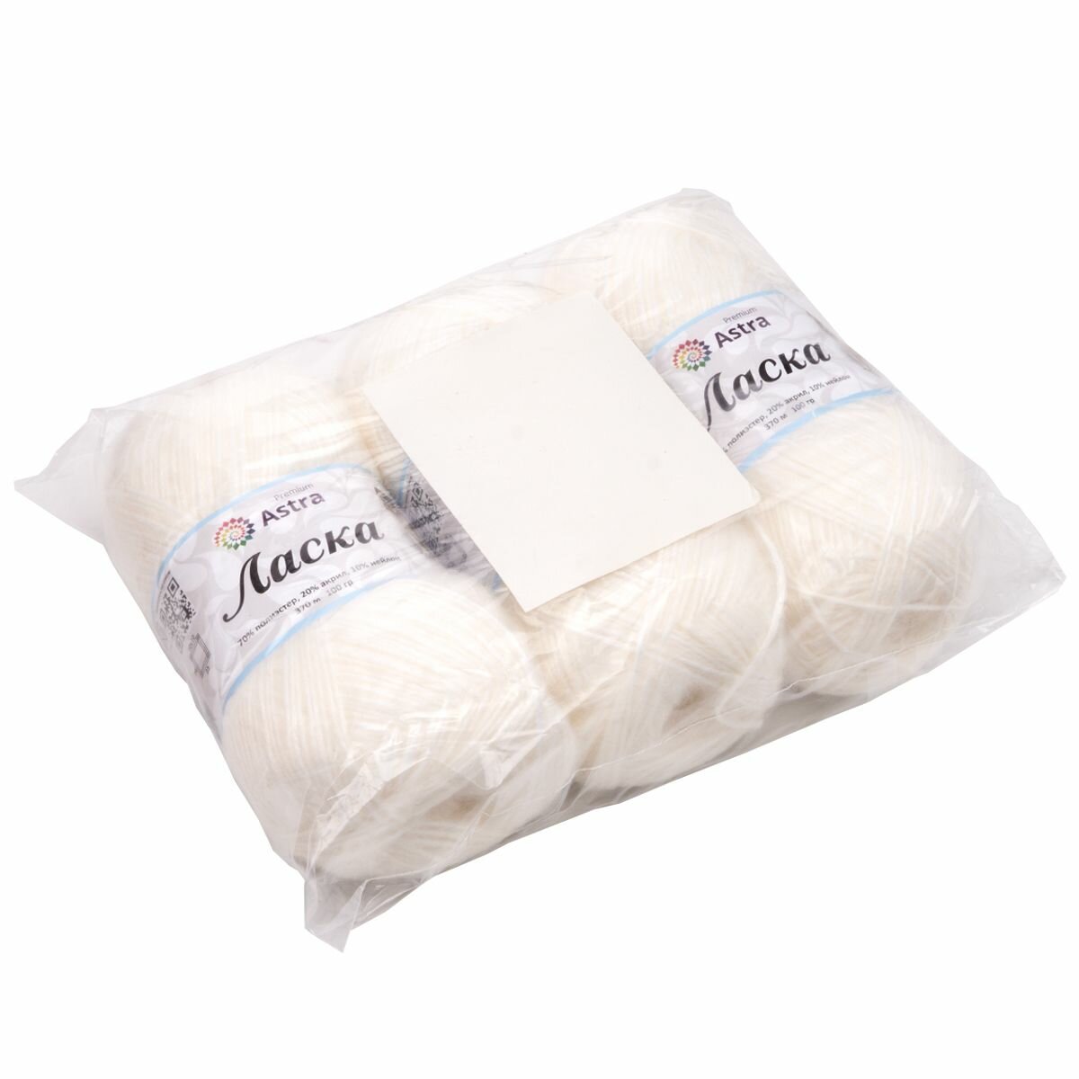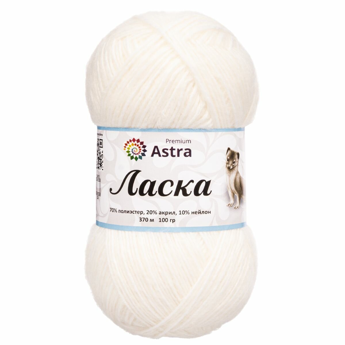 Пряжа для вязания Astra Premium 'Ласка' 100г, 370м (70% полиэстер, 20% акрил, 10% нейлон) (029 молочный), 3 мотка