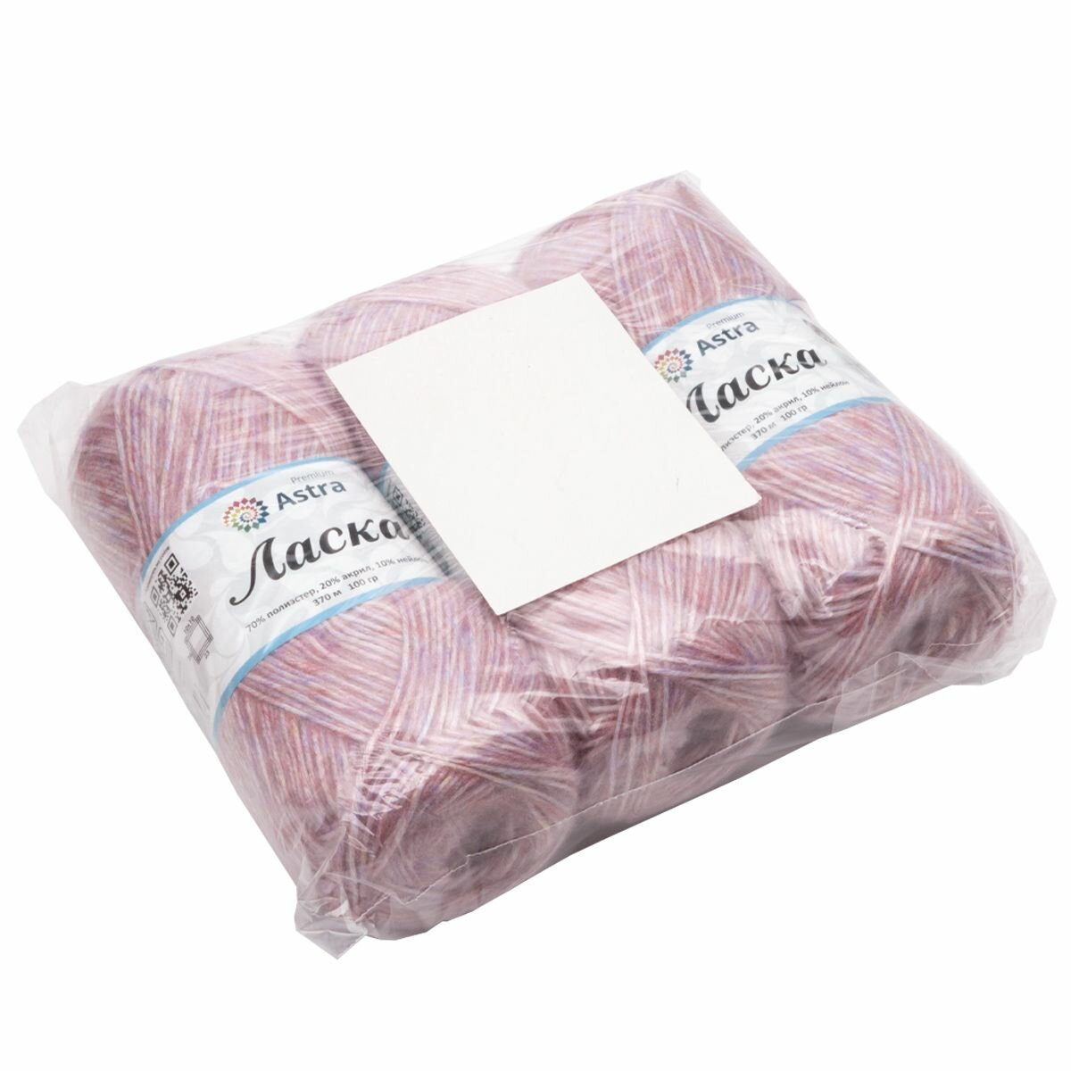 Пряжа для вязания Astra Premium 'Ласка' 100г, 370м (70% полиэстер, 20% акрил, 10% нейлон) (001 белый), 3 мотка