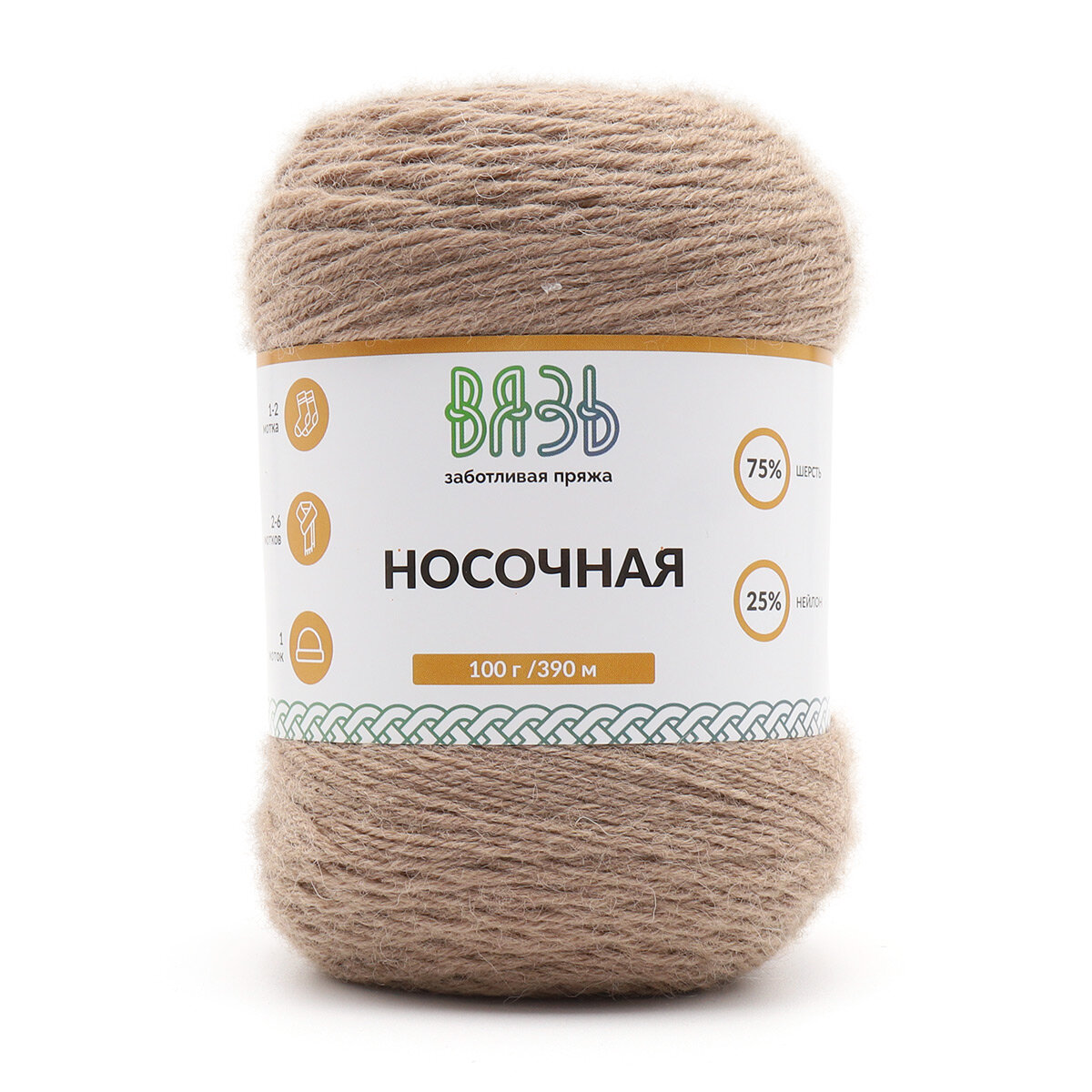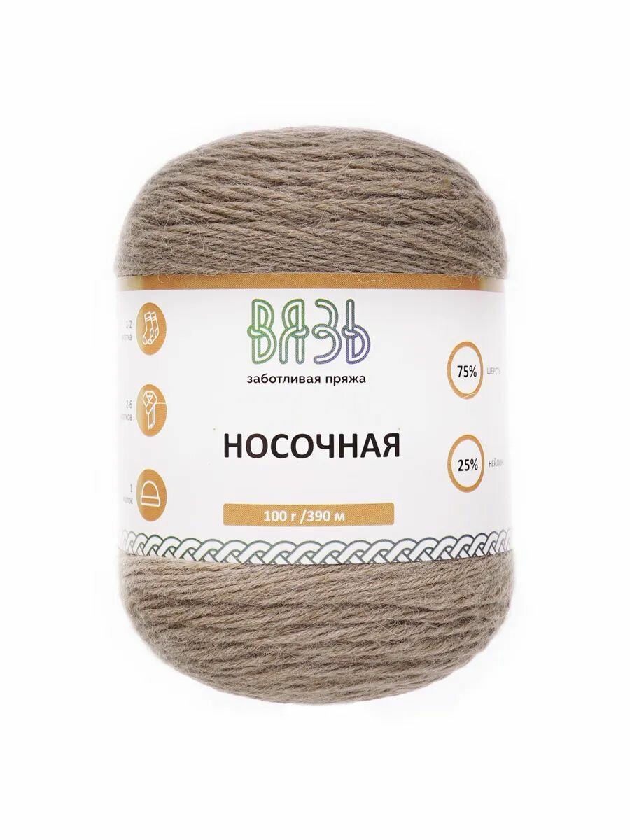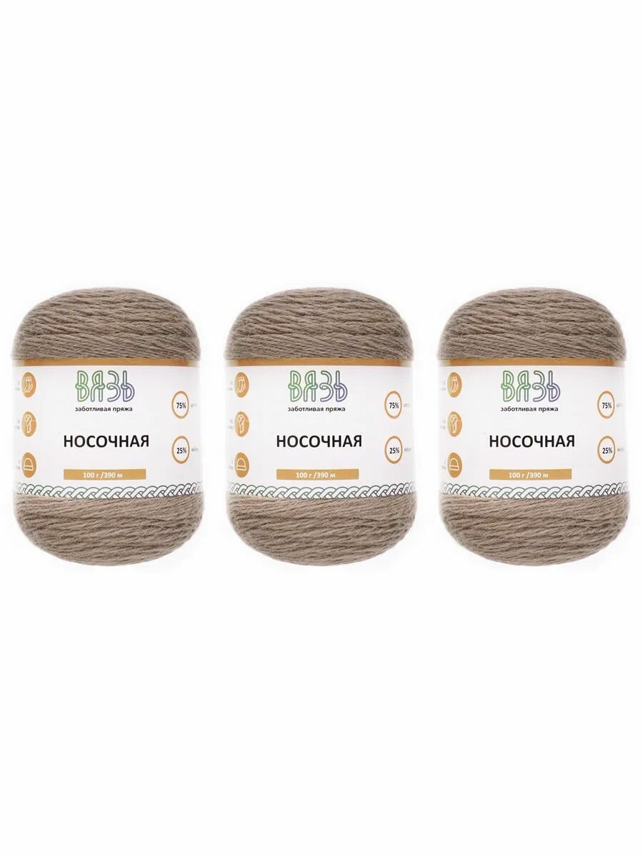 Купить Пряжа для вязания Вязь 'Носочная' 100г, 390м (75% шерсть, 25% нейлон) (02 бежевый), 3 мотка