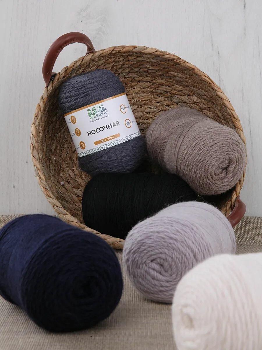 Пряжа для вязания Вязь 'Носочная' 100г, 390м (75% шерсть, 25% нейлон) (04 черный), 3 мотка