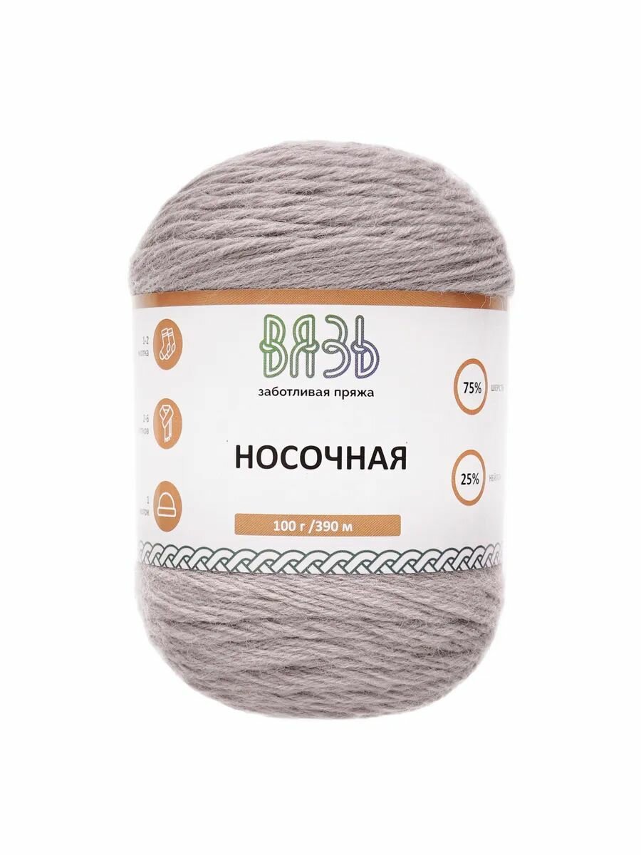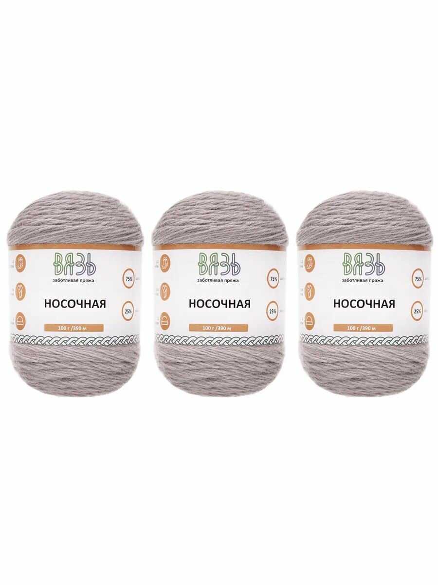 Пряжа для вязания Вязь 'Носочная' 100г, 390м (75% шерсть, 25% нейлон) (06 серый), 3 мотка
