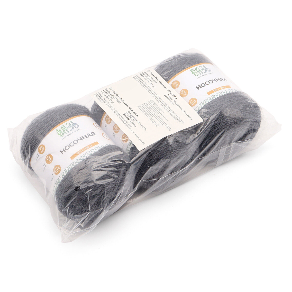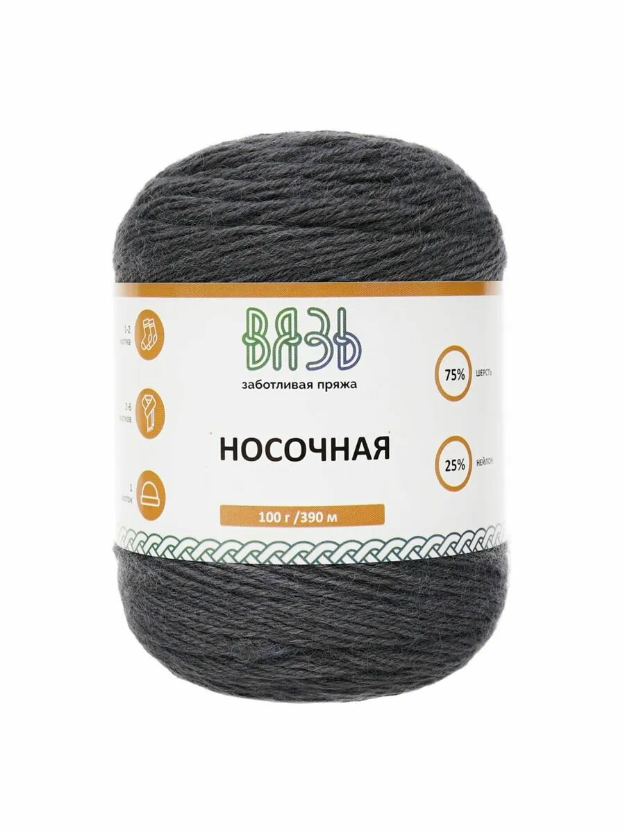 Пряжа для вязания Вязь 'Носочная' 100г, 390м (75% шерсть, 25% нейлон) (04 черный), 3 мотка
