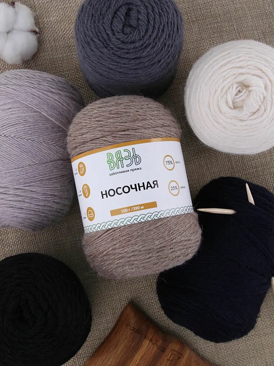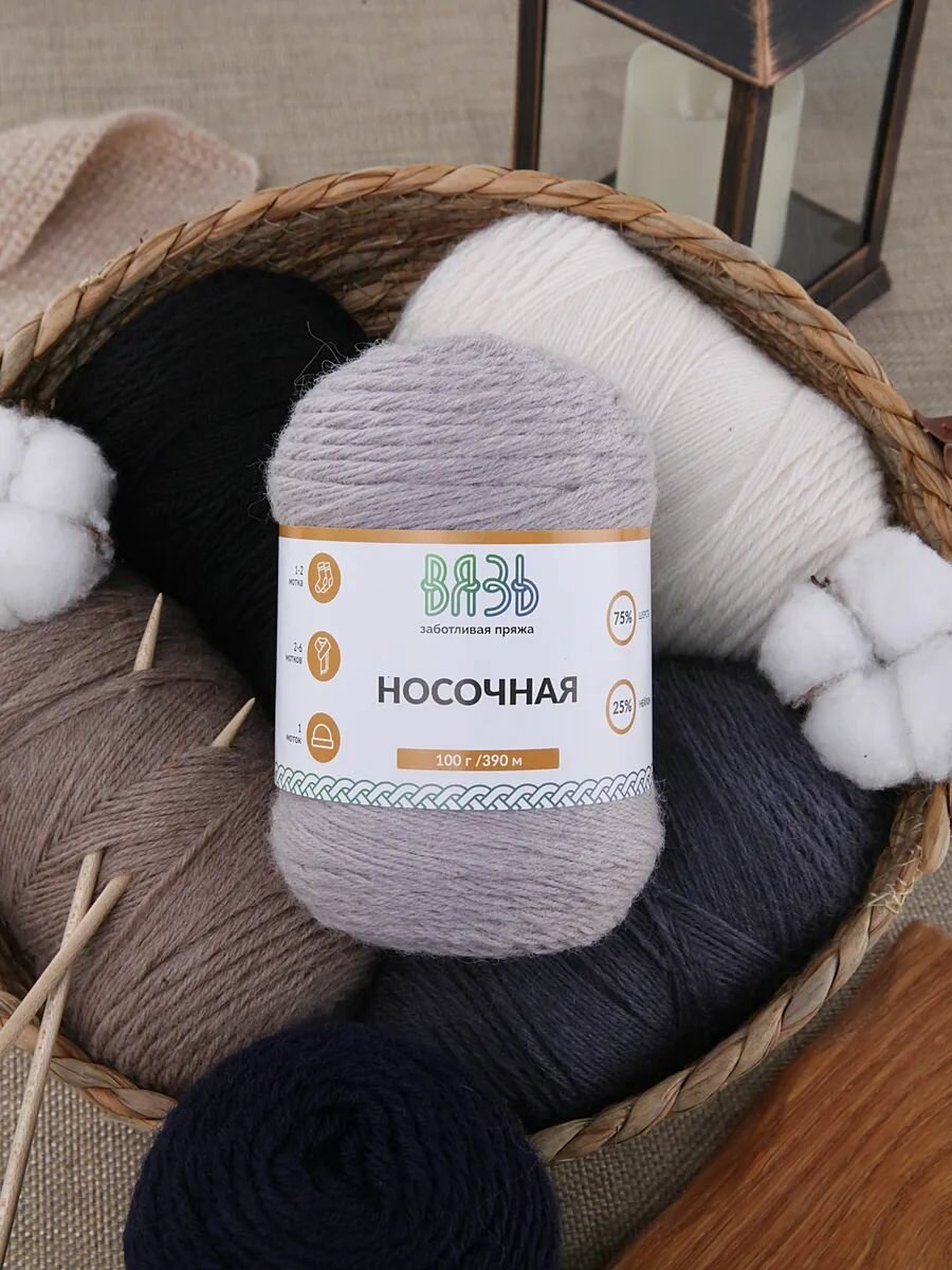 СохранитьПряжа для вязания Вязь 'Носочная' 100г, 390м (75% шерсть, 25% нейлон) (06 серый), 3 мотка интересное: