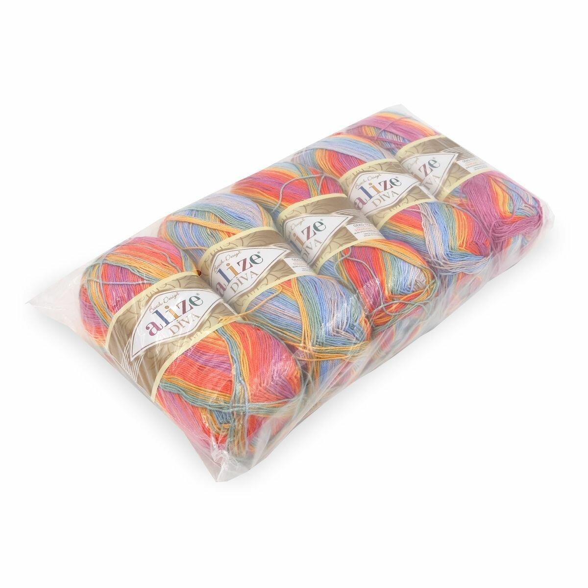 Пряжа для вязания Alize Diva Batik, цвет 1815, моток 100г, 350г, 5 мотков интересное: