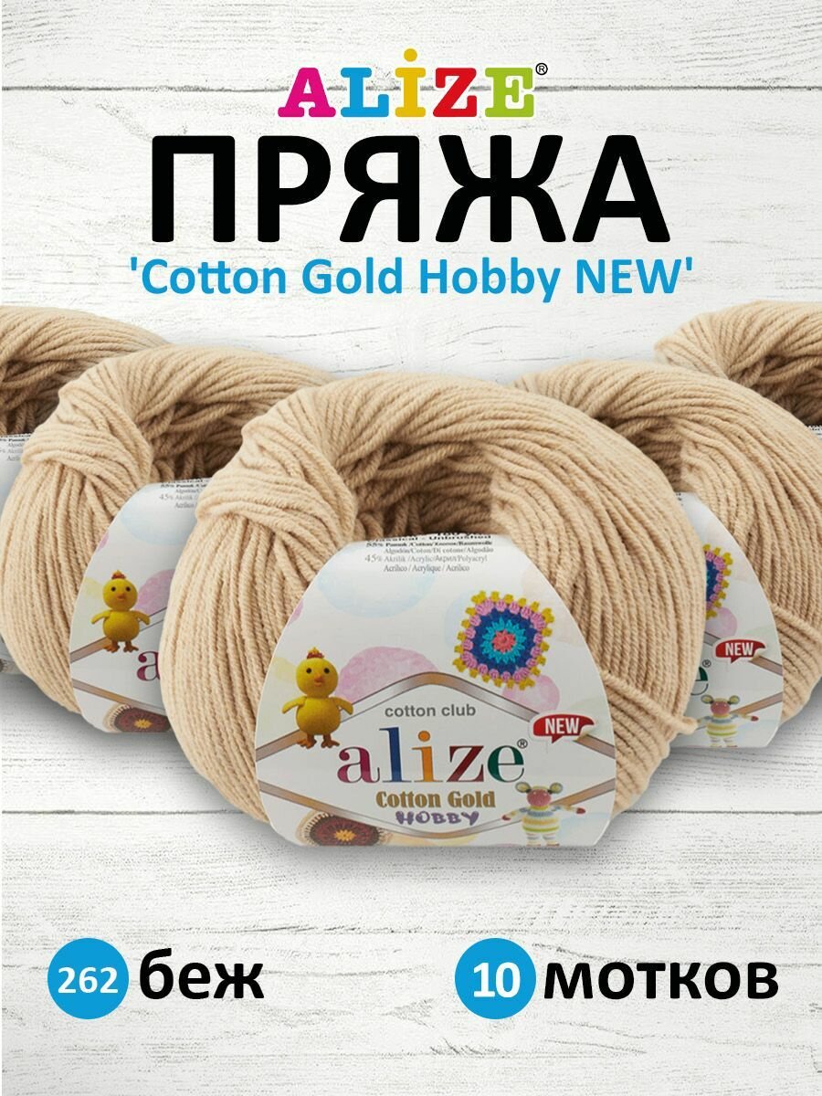 Купить Пряжа для вязания ALIZE 'Cotton Gold Hobby NEW', 50г, 165м (55% хлопок, 45% акрил) (262 бежевый), 10 мотков