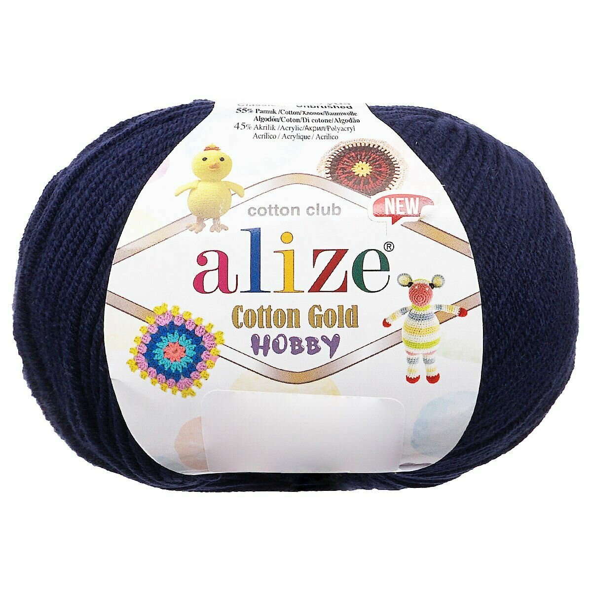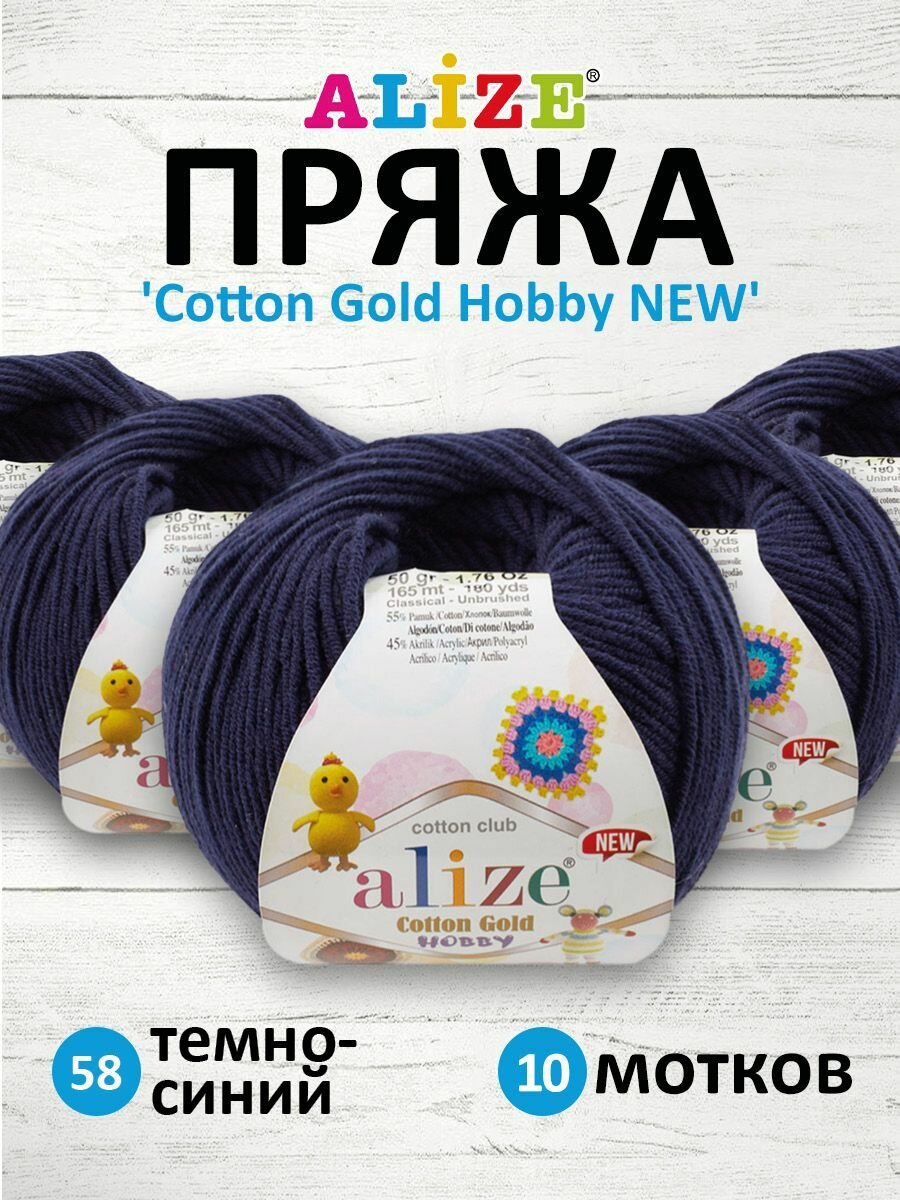 Купить Пряжа для вязания ALIZE 'Cotton Gold Hobby NEW', 50г, 165м (55% хлопок, 45% акрил) (58 темно-синий), 10 мотков