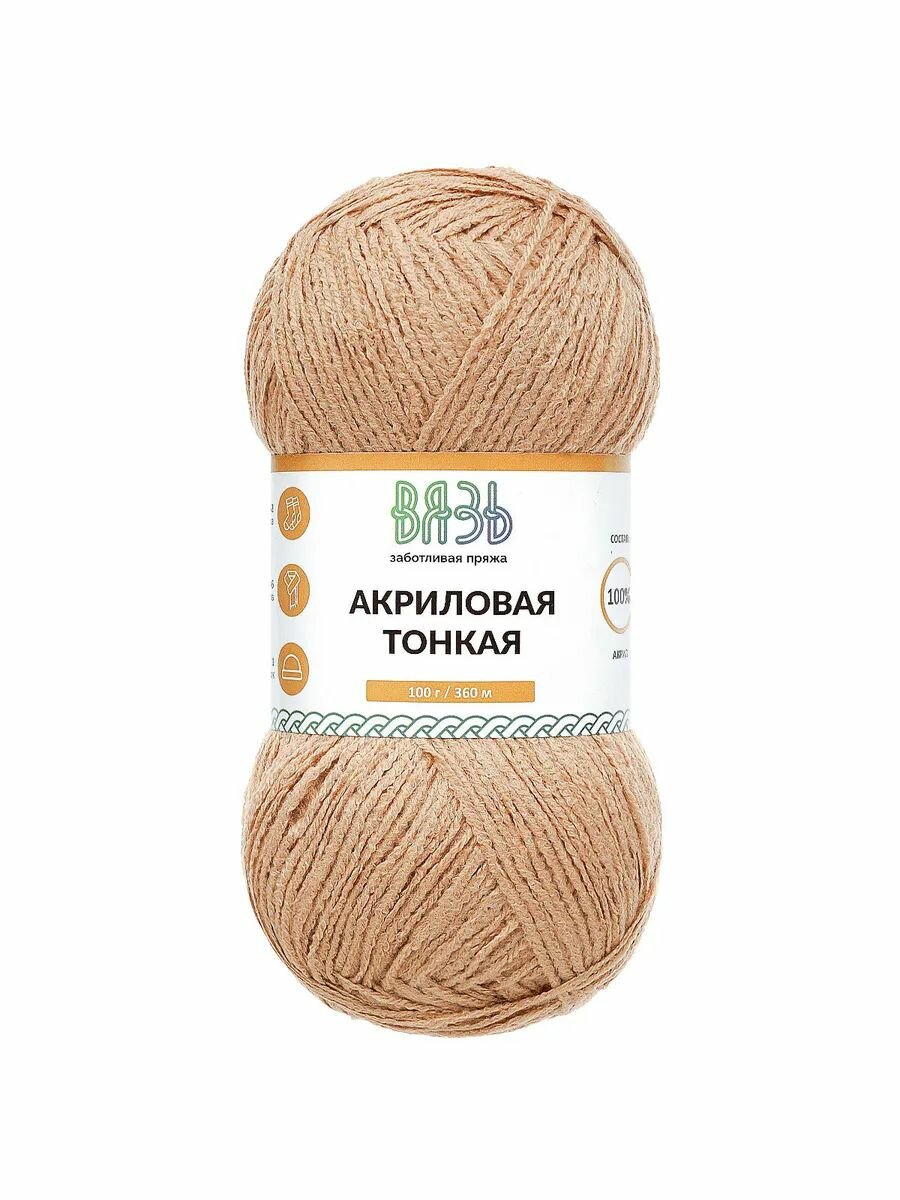 Купить Пряжа для вязания Вязь 'Акриловая тонкая' 100г, 360м (100% акрил) (818 светло-коричневый), 3 мотка