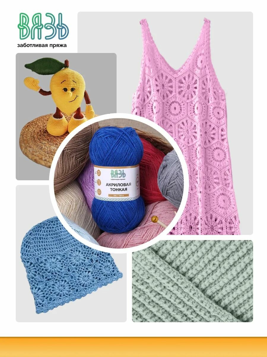 Пряжа для вязания Вязь 'Акриловая тонкая' 100г, 360м (100% акрил) (650 синий), 3 мотка