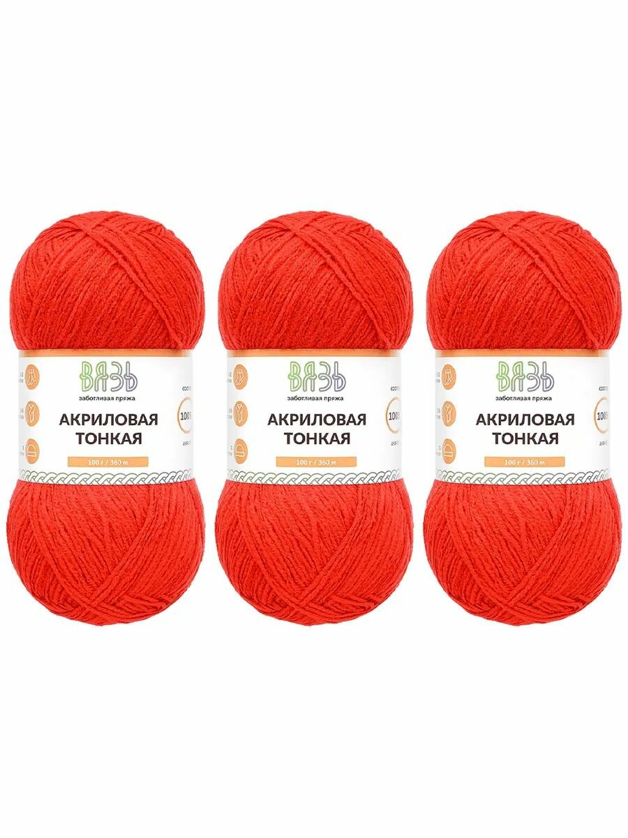 Купить Пряжа для вязания Вязь 'Акриловая тонкая' 100г, 360м (100% акрил) (160 красный), 3 мотка