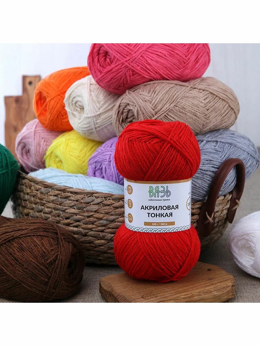 Пряжа для вязания Вязь 'Акриловая тонкая' 100г, 360м (100% акрил) (160 красный), 3 мотка
