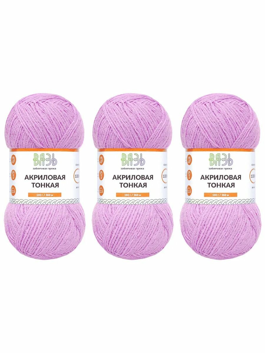 Купить Пряжа для вязания Вязь 'Акриловая тонкая' 100г, 360м (100% акрил) (717 сирень), 3 мотка