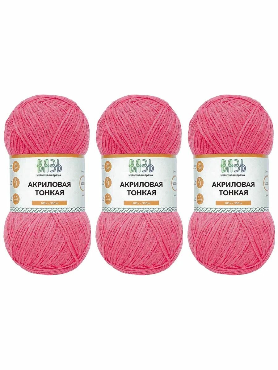 СохранитьПряжа для вязания Вязь 'Акриловая тонкая' 100г, 360м (100% акрил) (123 розовый), 3 мотка интересное: