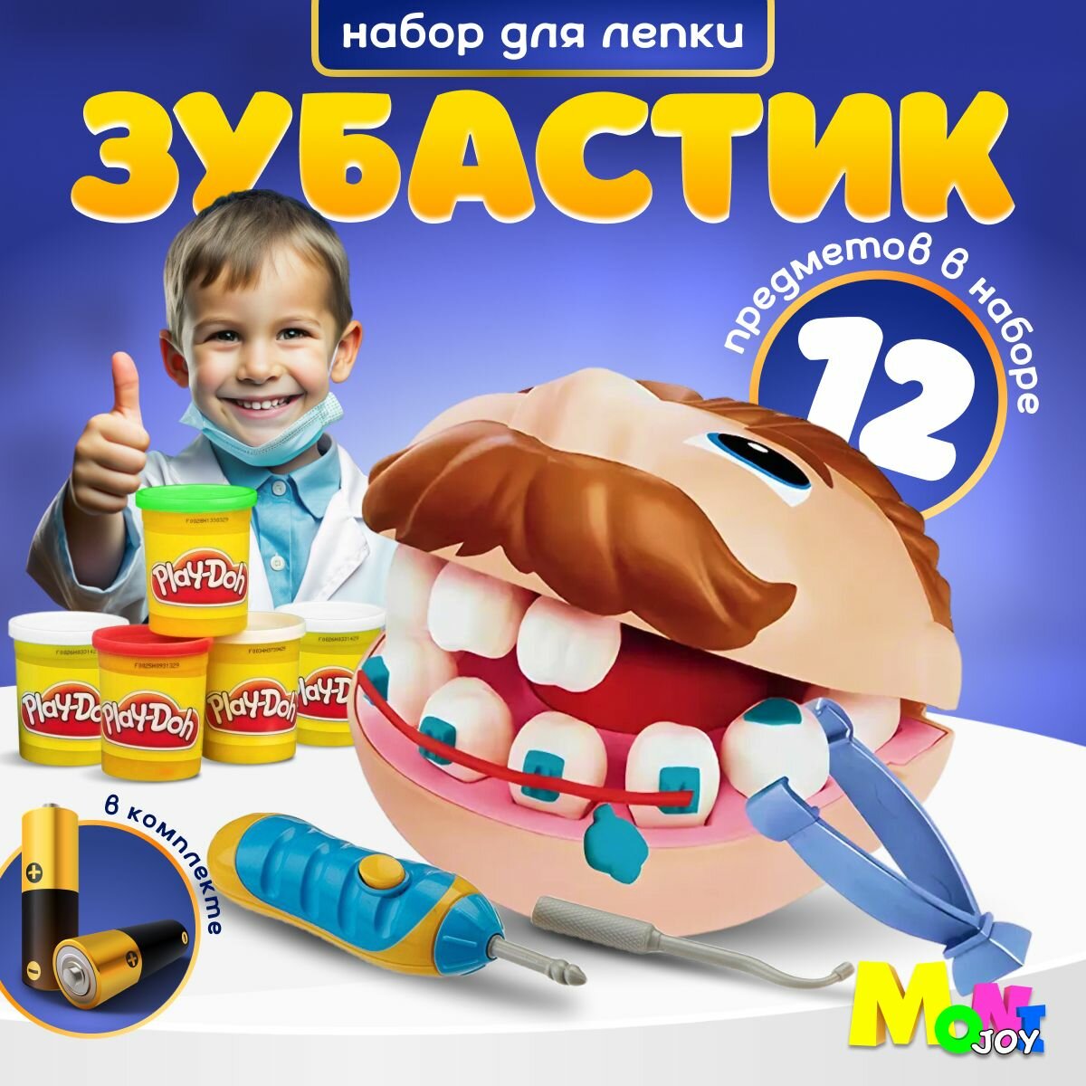 Мягкий пластилин для детей по мотивам Play-doh плей до Стоматолог, 10 инструментов, интересное: