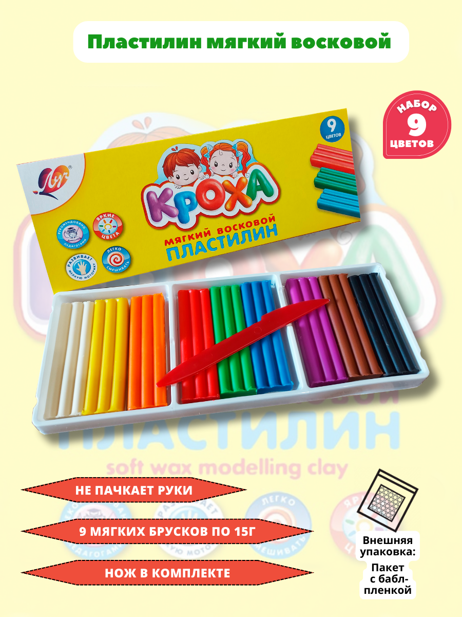 Купить Пластилин мягкий восковой Луч Кроха, набор 9 цветов