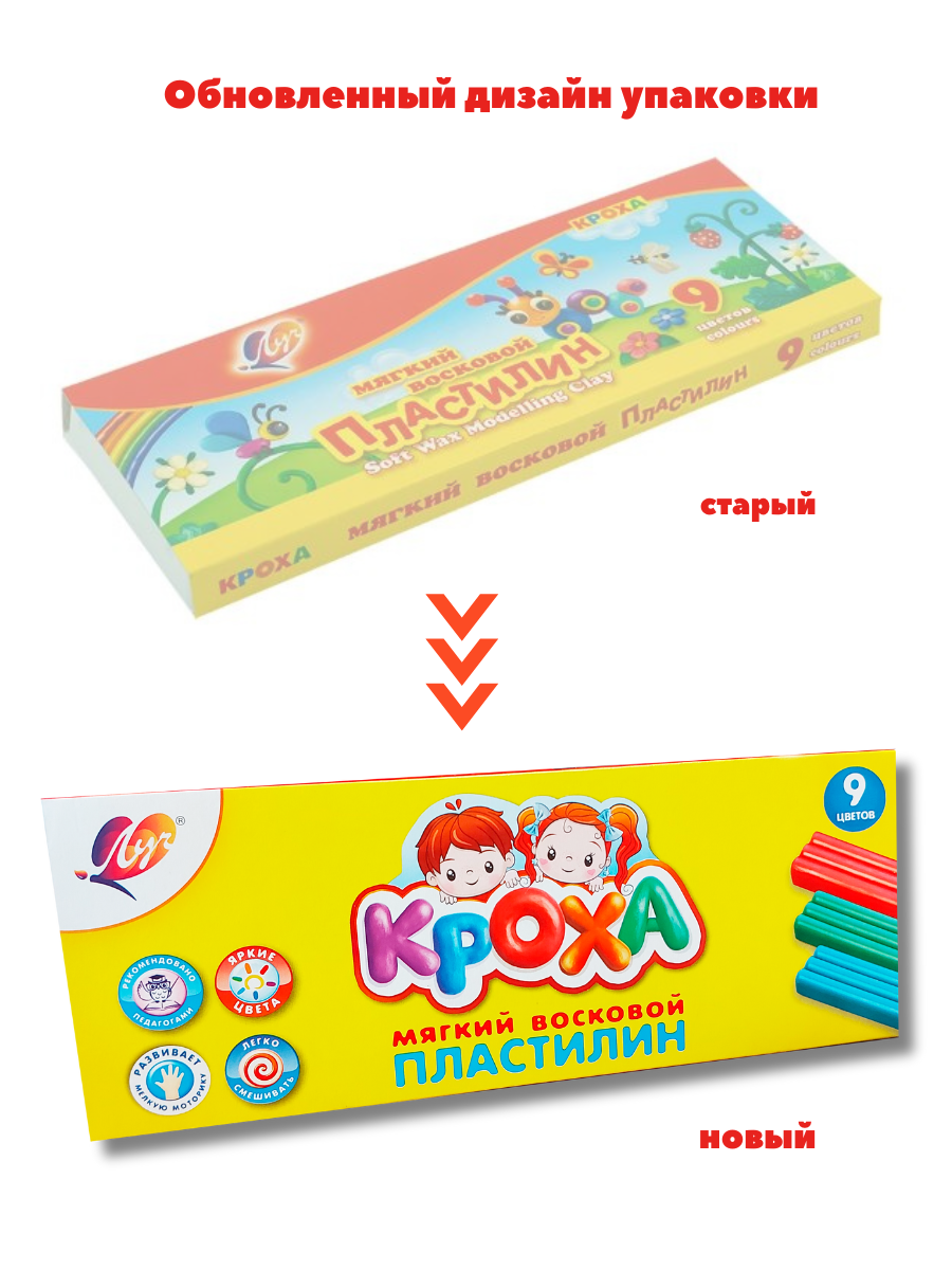 Пластилин мягкий восковой Луч Кроха, набор 9 цветов интересное: