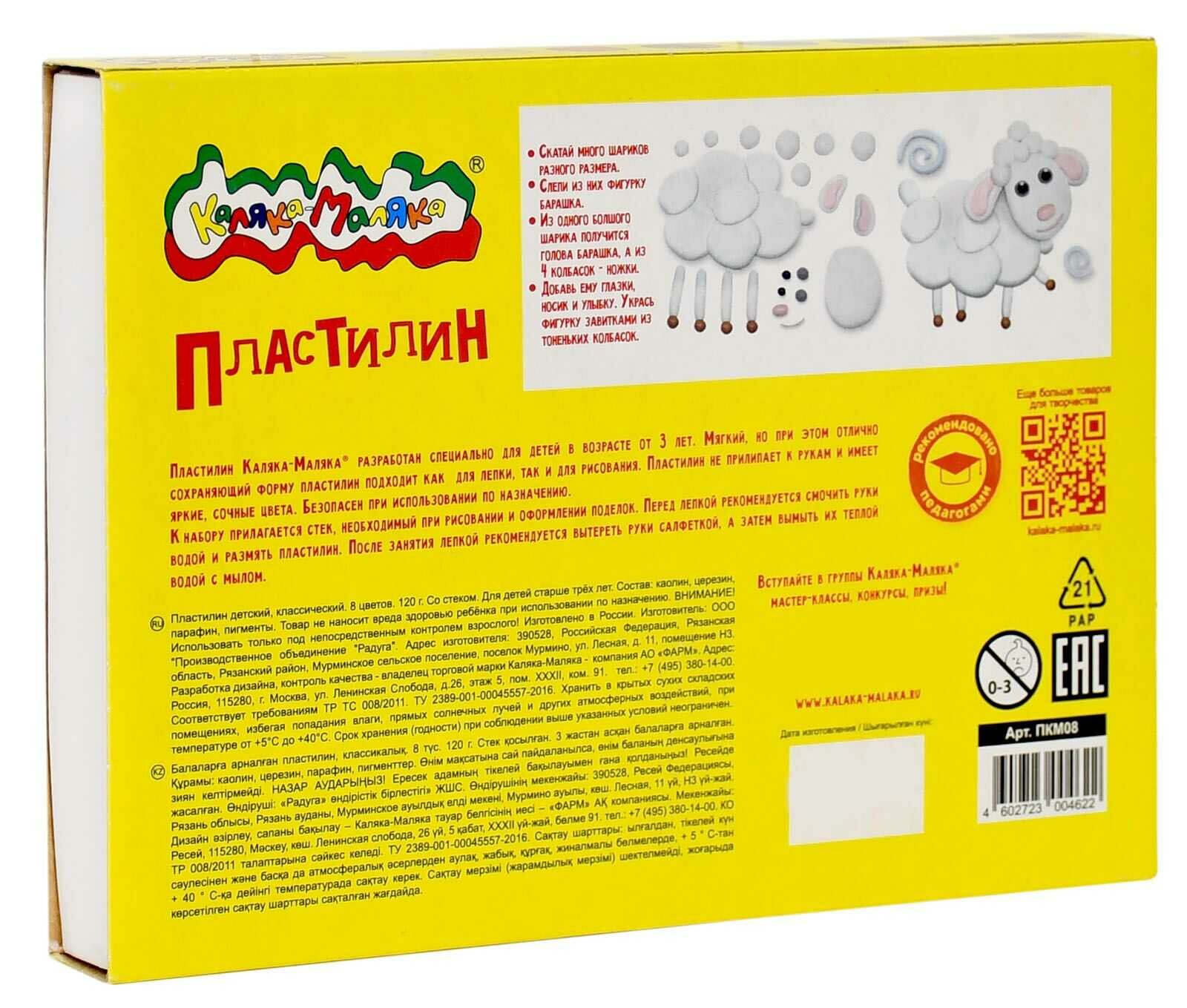Пластилин Каляка-Маляка, 8 цветов интересное: