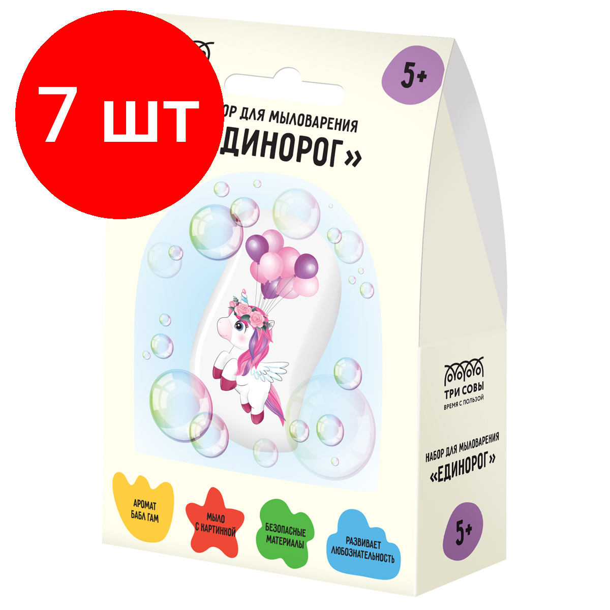 Комплект 7 шт, Набор для мыловарения ТРИ совы "Единорог", 1 мыло с картинкой, картонная коробка интересное: