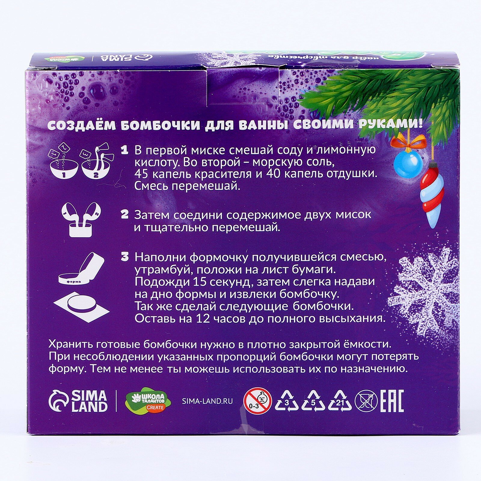 Купить Бомбочки для ванн своими руками на новый год «Ёлочный шар», набор для творчества