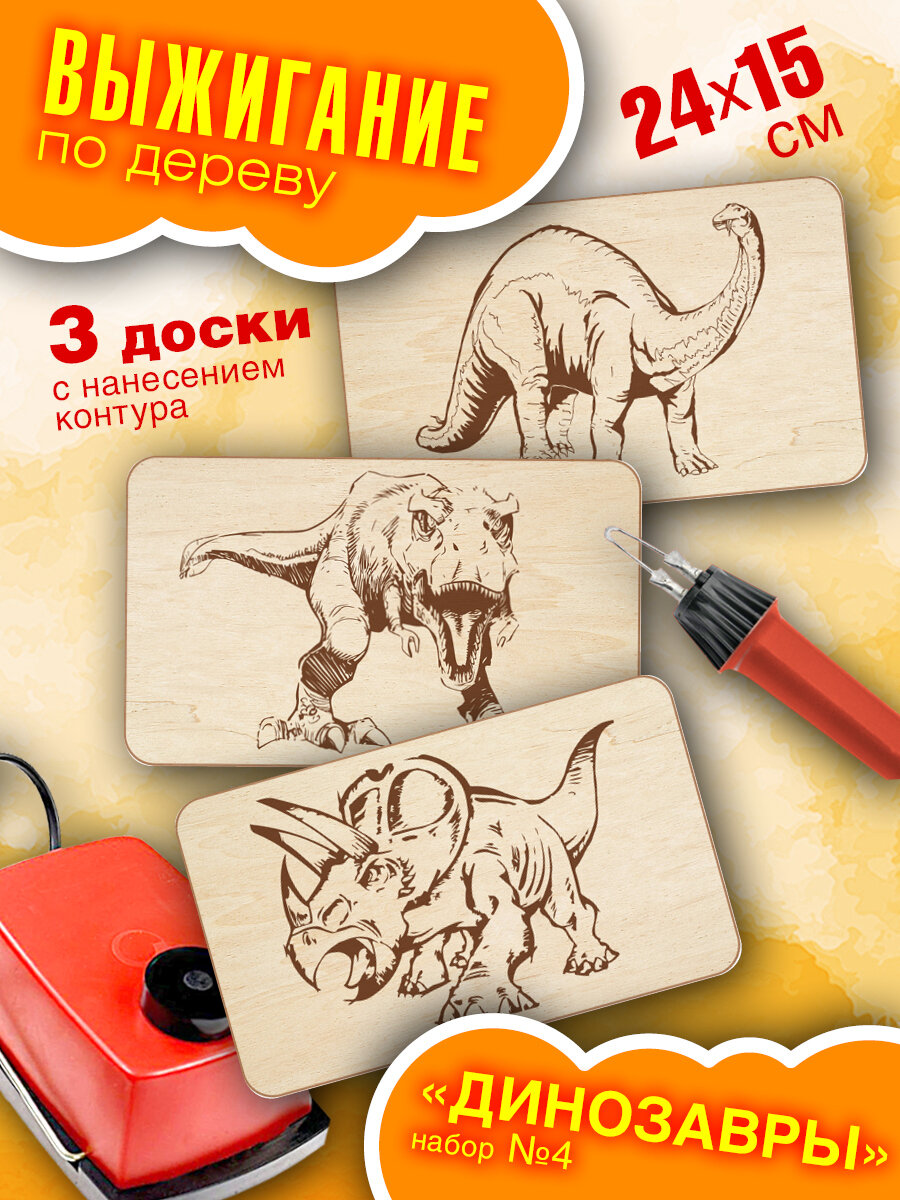 Купить Набор досок для выжигания "Динозавры", 15х24 см, 3 шт, набор №4