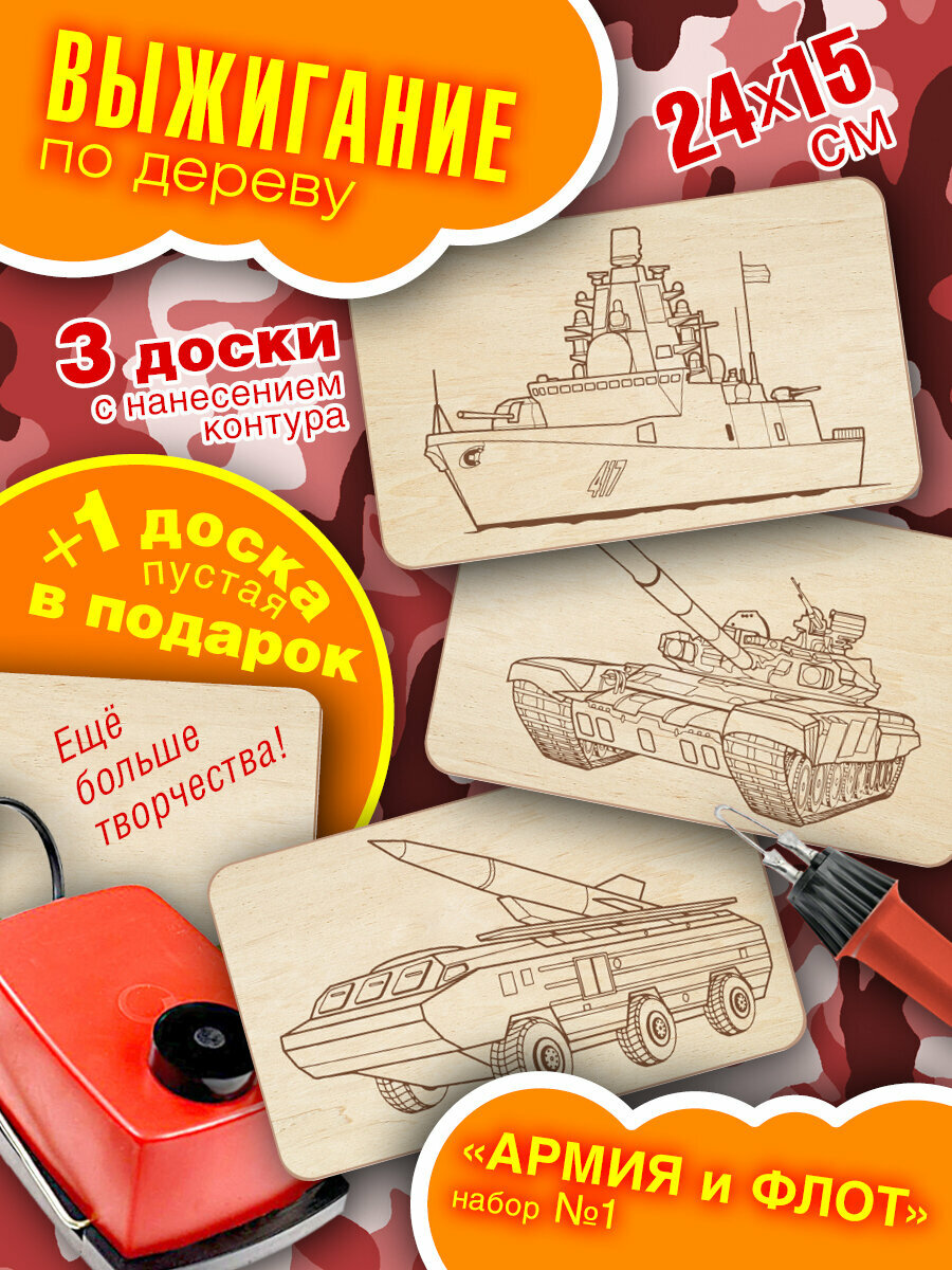 Набор досок для выжигания по дереву Армия. 15x24 4шт набор 1 интересное: