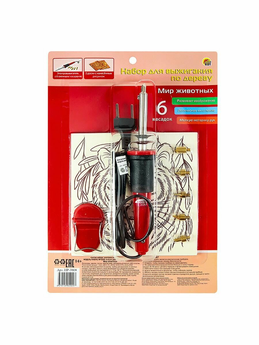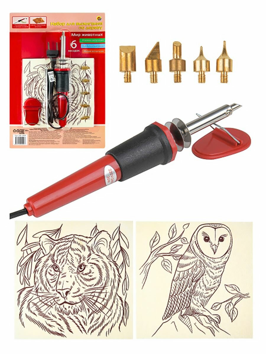 Набор для выжигания по дереву Мир животных (2 плашки 15х15 см) Рыжий Кот НР-5909 интересное:
