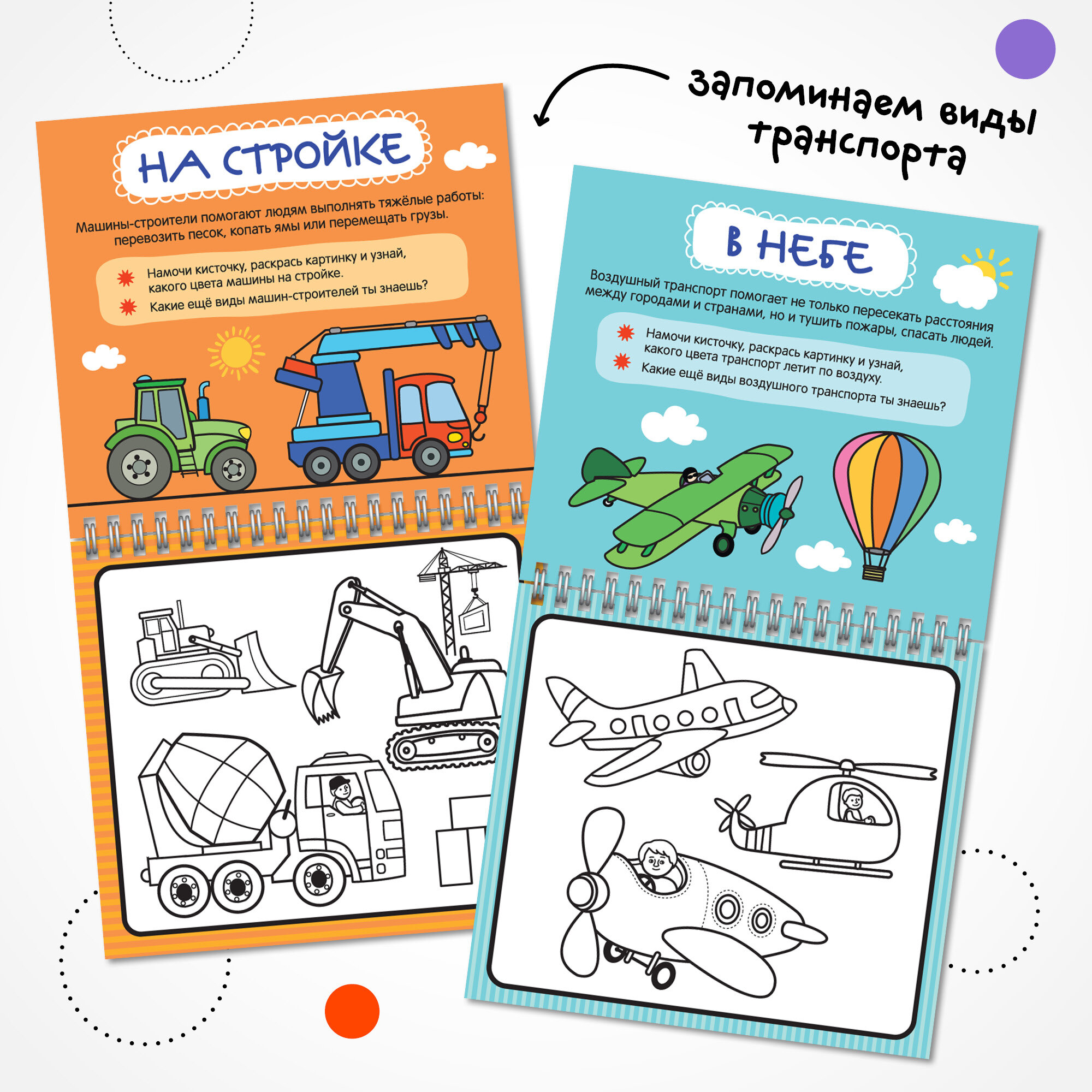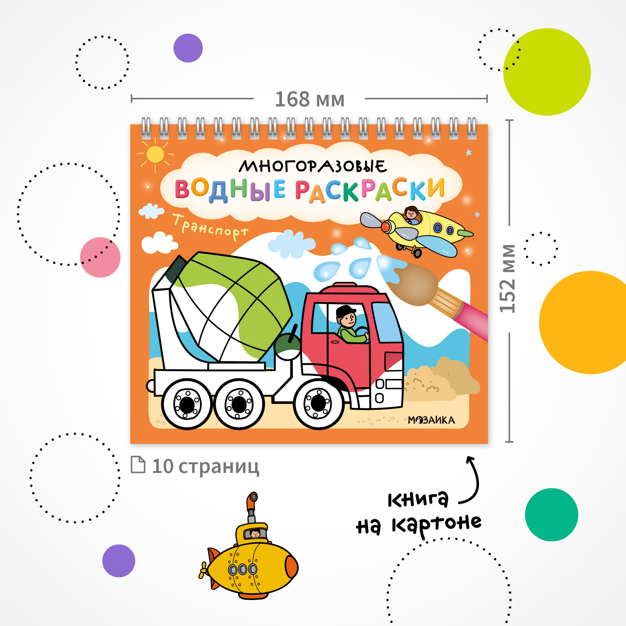 Многоразовая водная раскраска мозаика kids для детей и малышей, Транспорт интересное:
