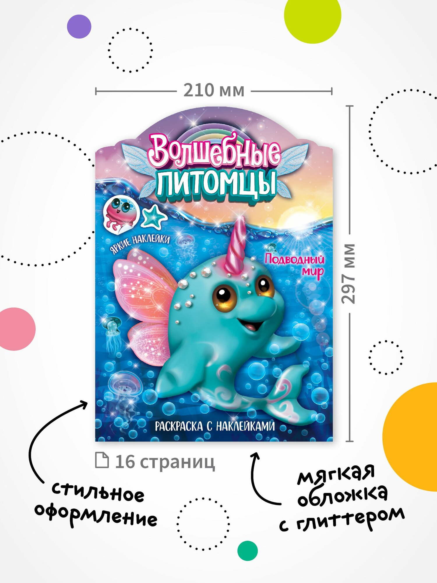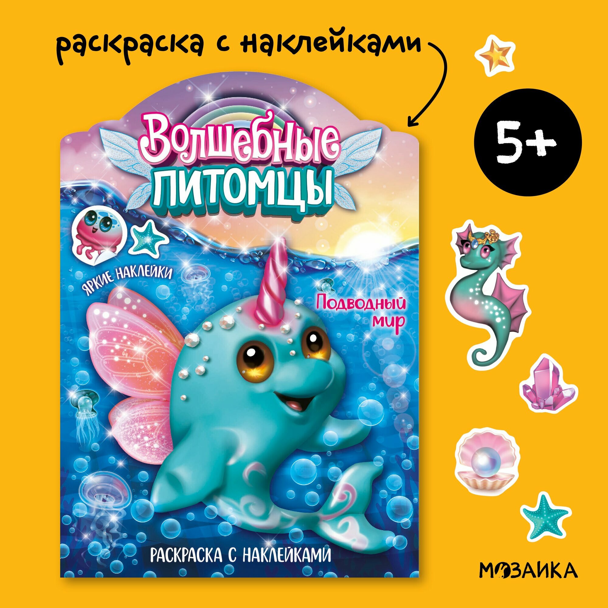 Купить Раскраска с наклейками мозаика kids для детей и малышей, Волшебные питомцы, Подводный мир