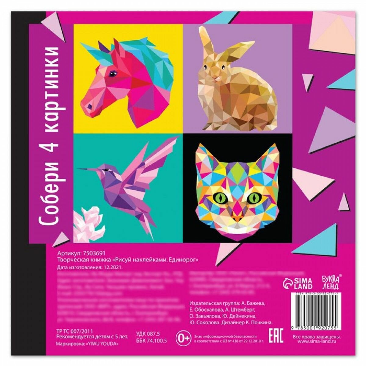 Творческая книжка «Рисуй наклейками. Единорог», 12 стр, 7503691 интересное: