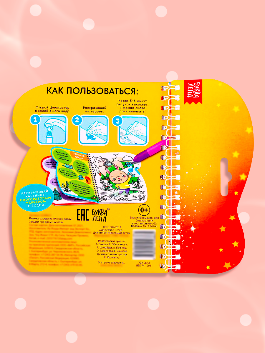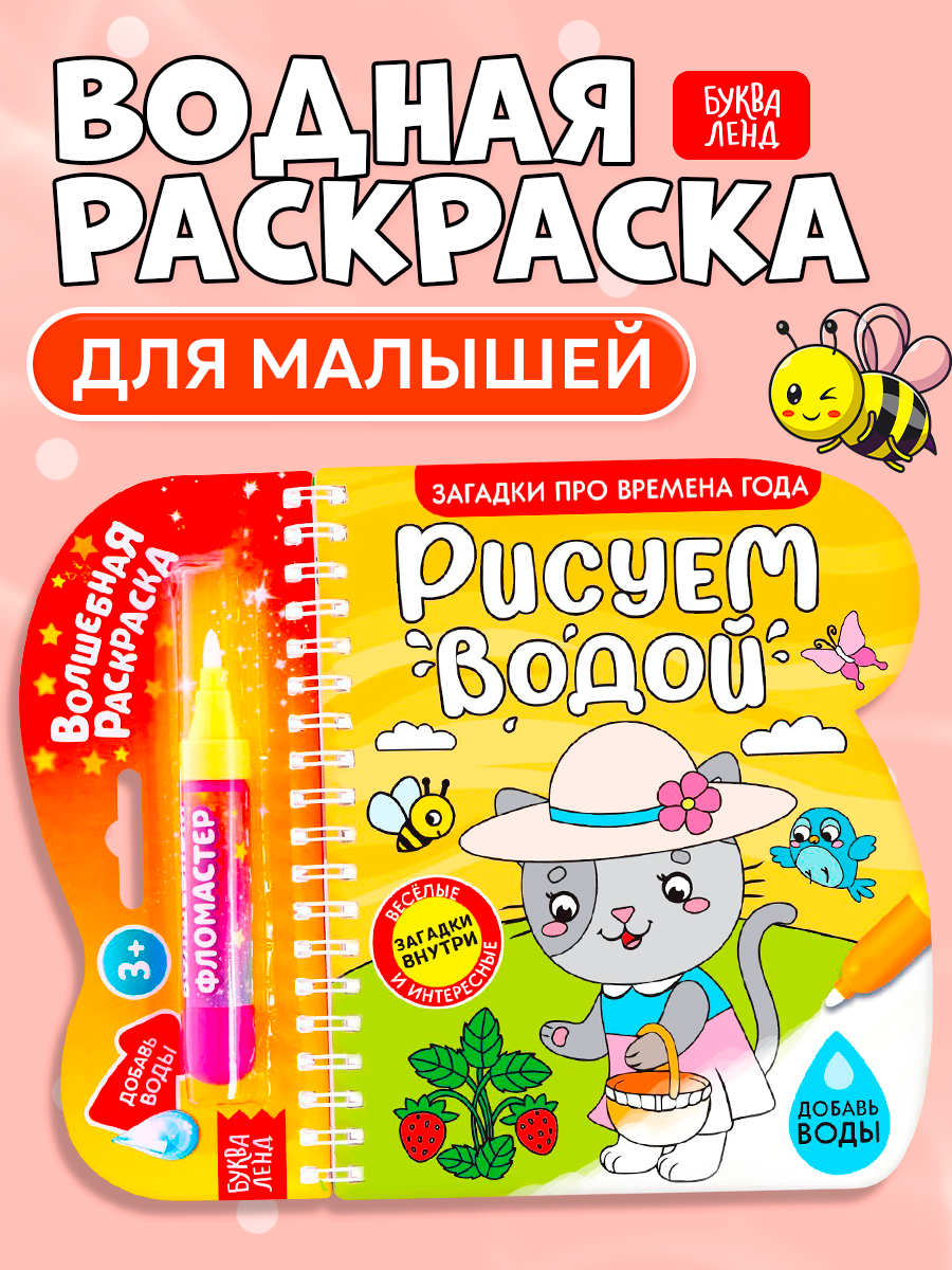 Купить Раскраска для рисования водой "Загадки про времена года" многоразовая, с маркером, БУКВА-ЛЕНД