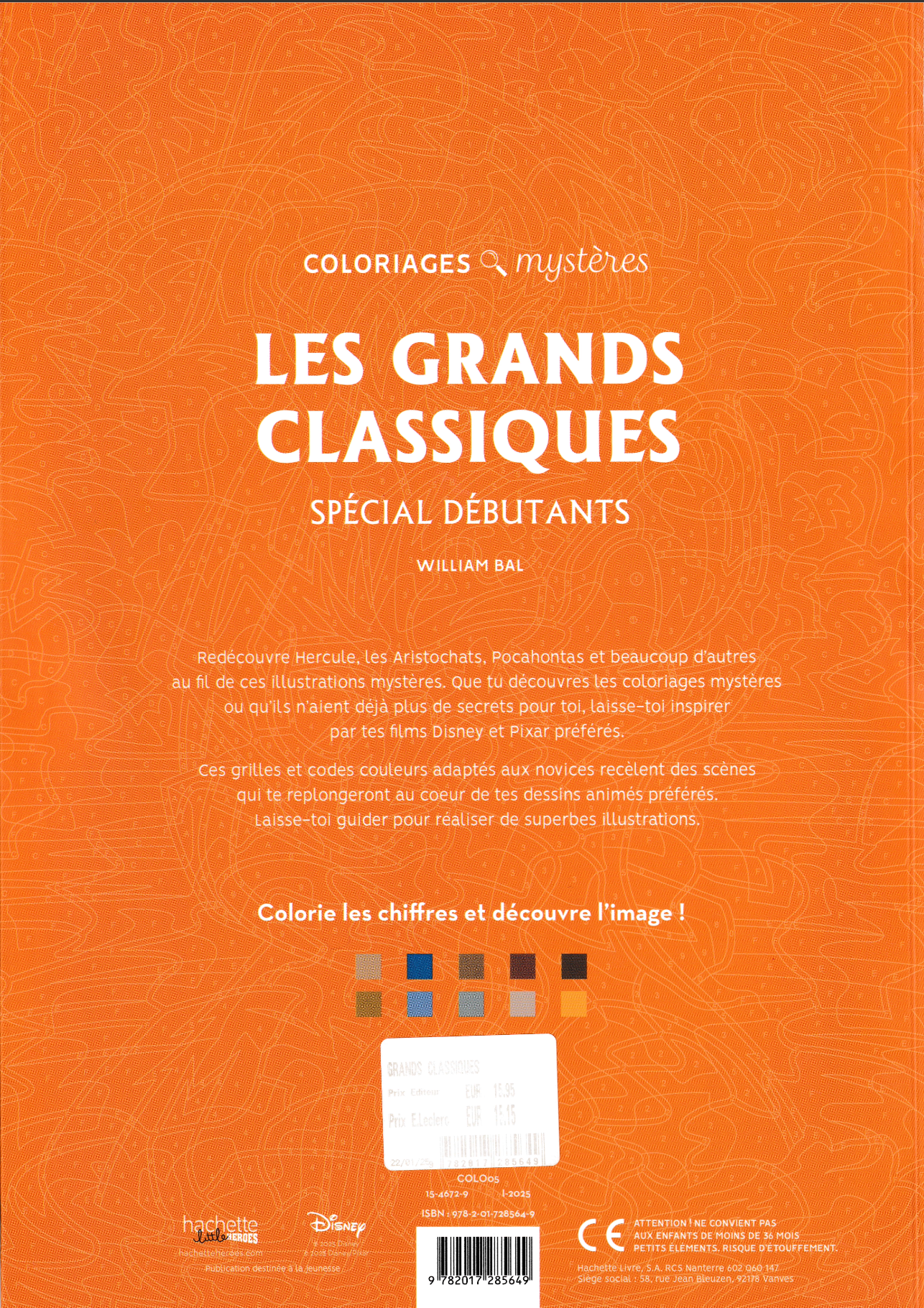 СохранитьРаскраска по номерам Coloriages mysteres Disney - Les Grands classiques -Special Debutants, Новика 2025 128стр. интересное: