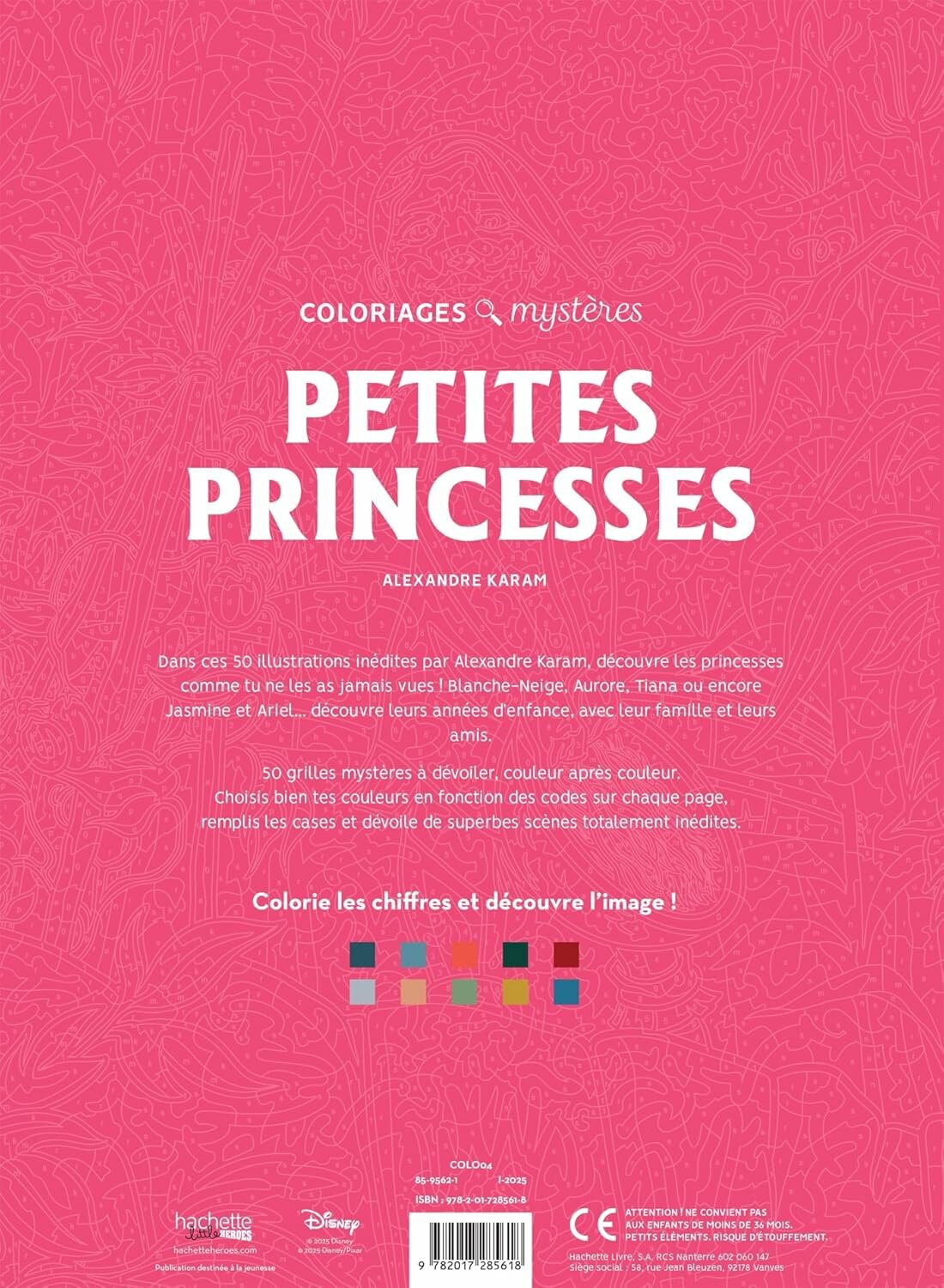 Купить Раскраска по номерам Coloriages mystères Disney - Petites princesses, 128стр ( НОВИНКА 2025 г)