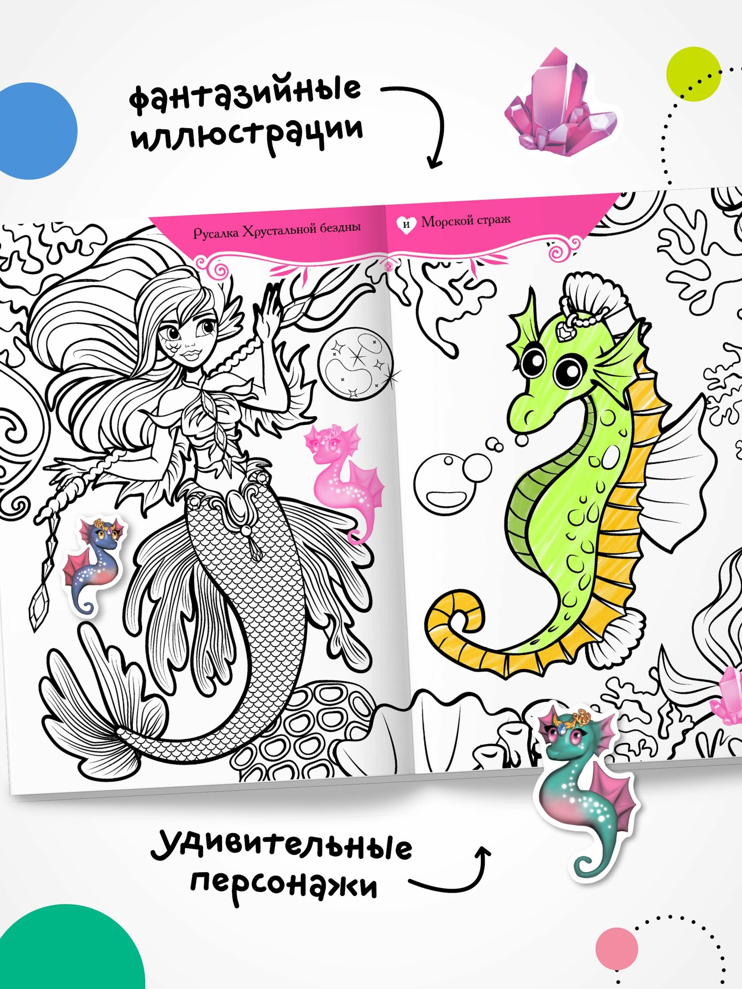 Раскраска с наклейками мозаика kids для детей и малышей, Русалки и их удивительные питомцы интересное: