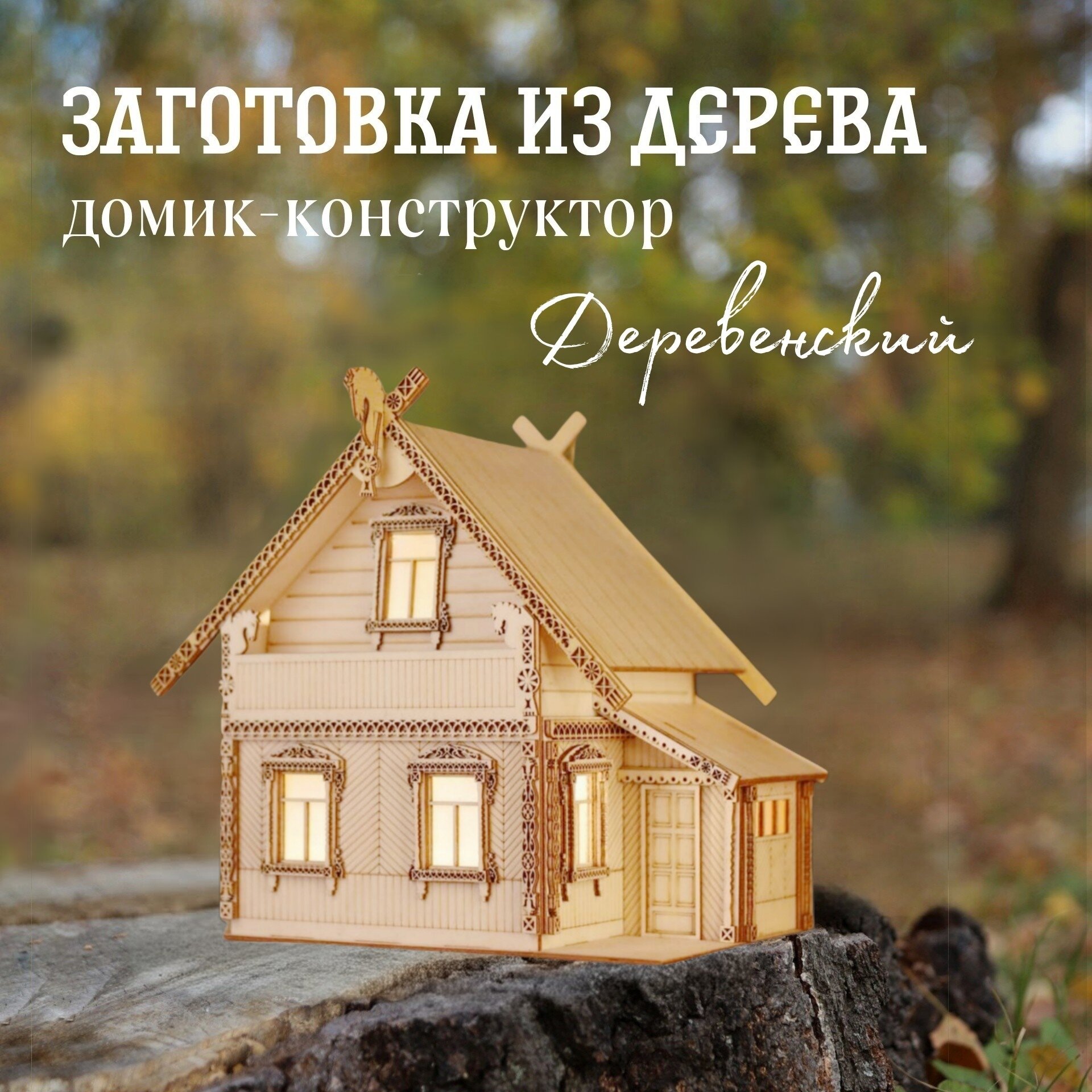 Домик конструктор из дерева с подсветкой "Деревенский домик", заготовка для декорирования интересное: