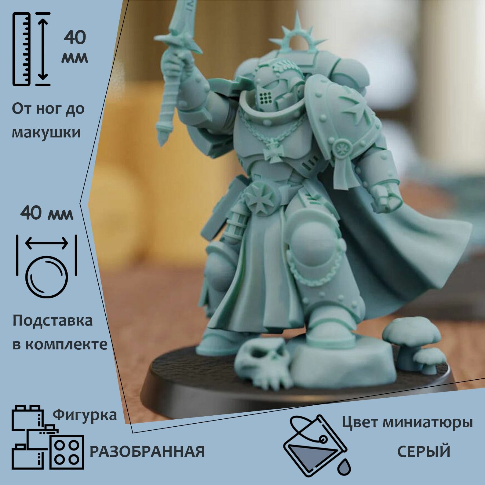 Космодесантник чемпион Чёрных храмовников для настольной игры Warhammer 40к размер 40мм