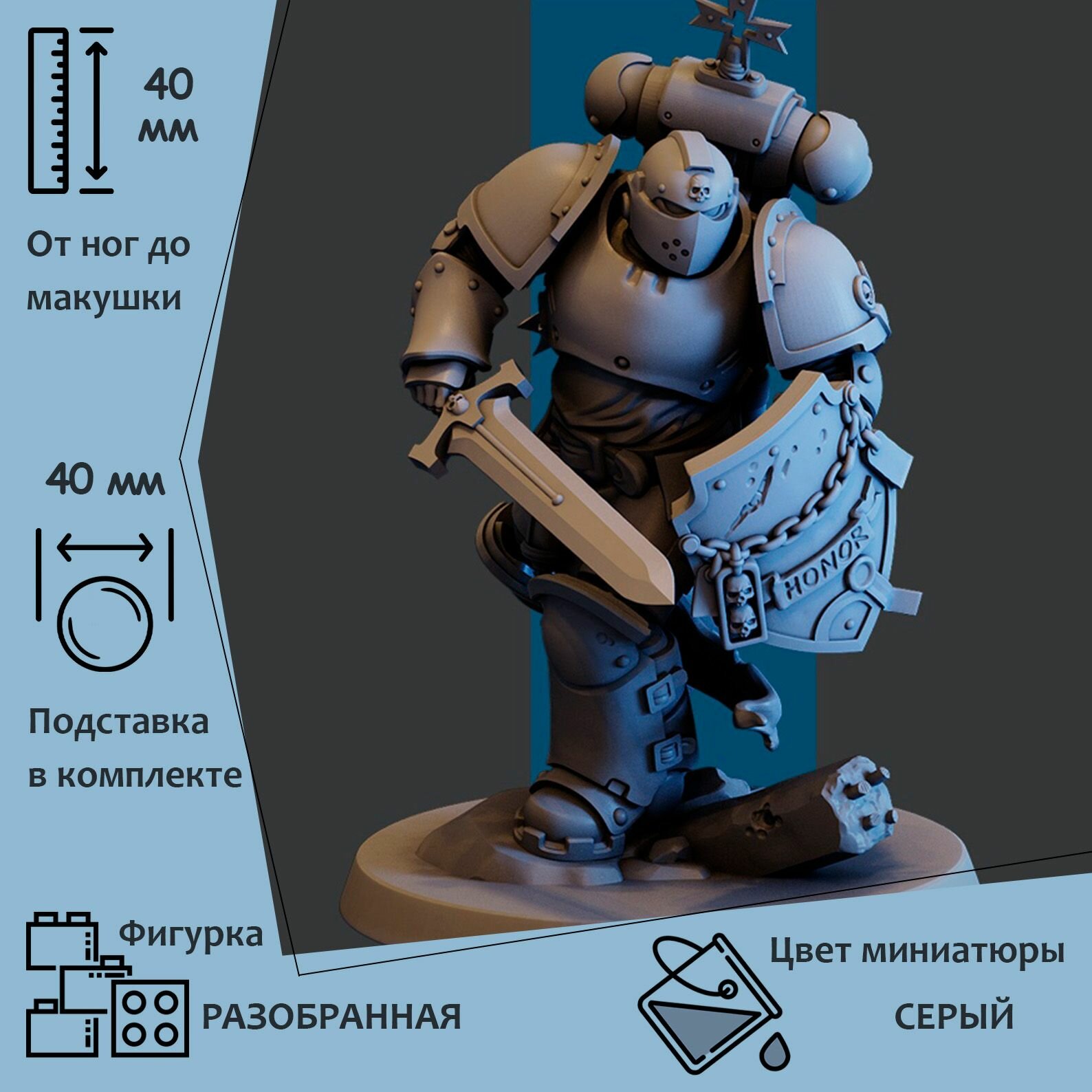 СохранитьЧемпион Чёрных Храмовников для настольной игры Warhammer 40к размер 40мм интересное: