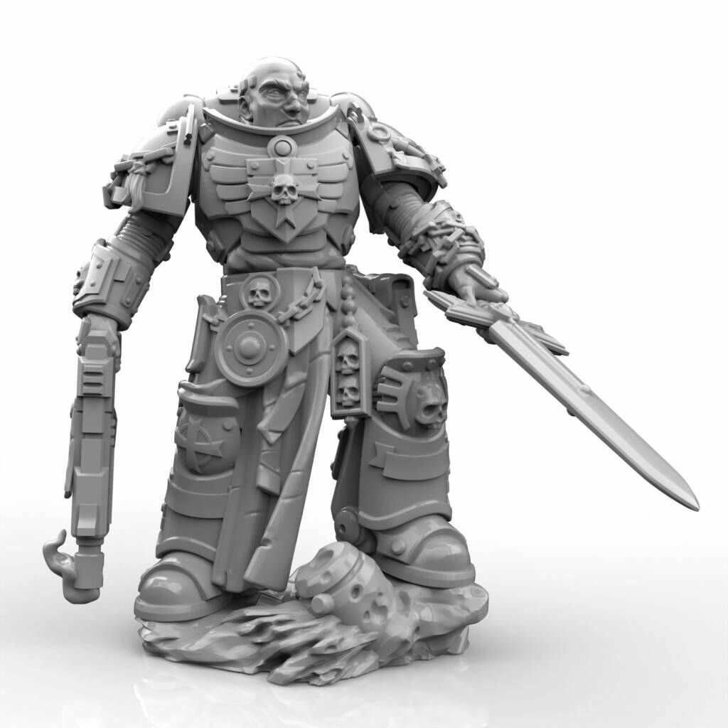 Купить Космодесантник чемпион Чёрных храмовников для настольной игры Warhammer 40к размер 40мм