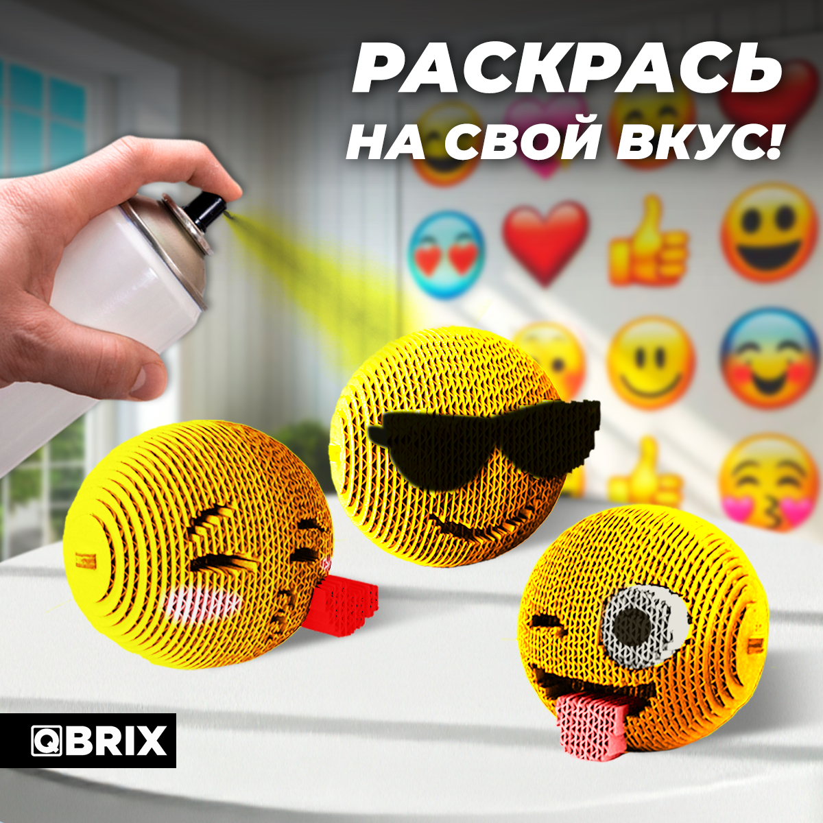 Купить Конструктор 3D QBRIX "Эмодзи Ver. 1", 258 деталей, картон, сборка без ножниц