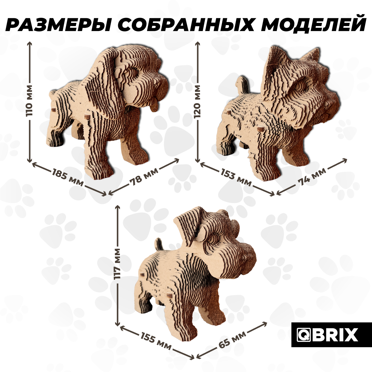 Конструктор 3D QBRIX "Три щенка", 237 деталей, картон, сборка без ножниц