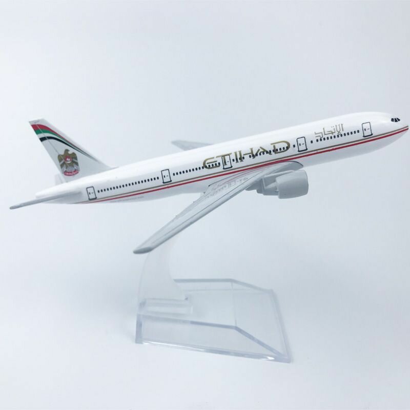 Купить Модель самолета 16 см, Boeing 777 "Etihad Airways', фабричное производство, металл, на подставке