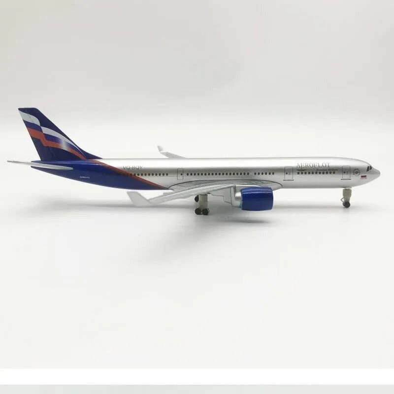 Модель самолета металлическая Airbus А330 Aeroflot, 16 см, на подставке