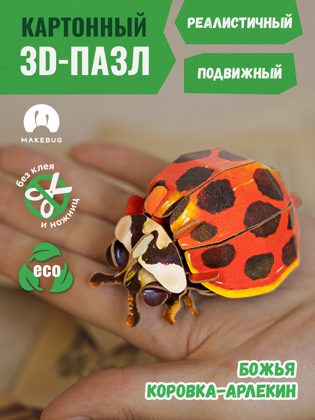 СохранитьКартонный 3д пазл конструктор Makebug Божья Коровка интересное:
