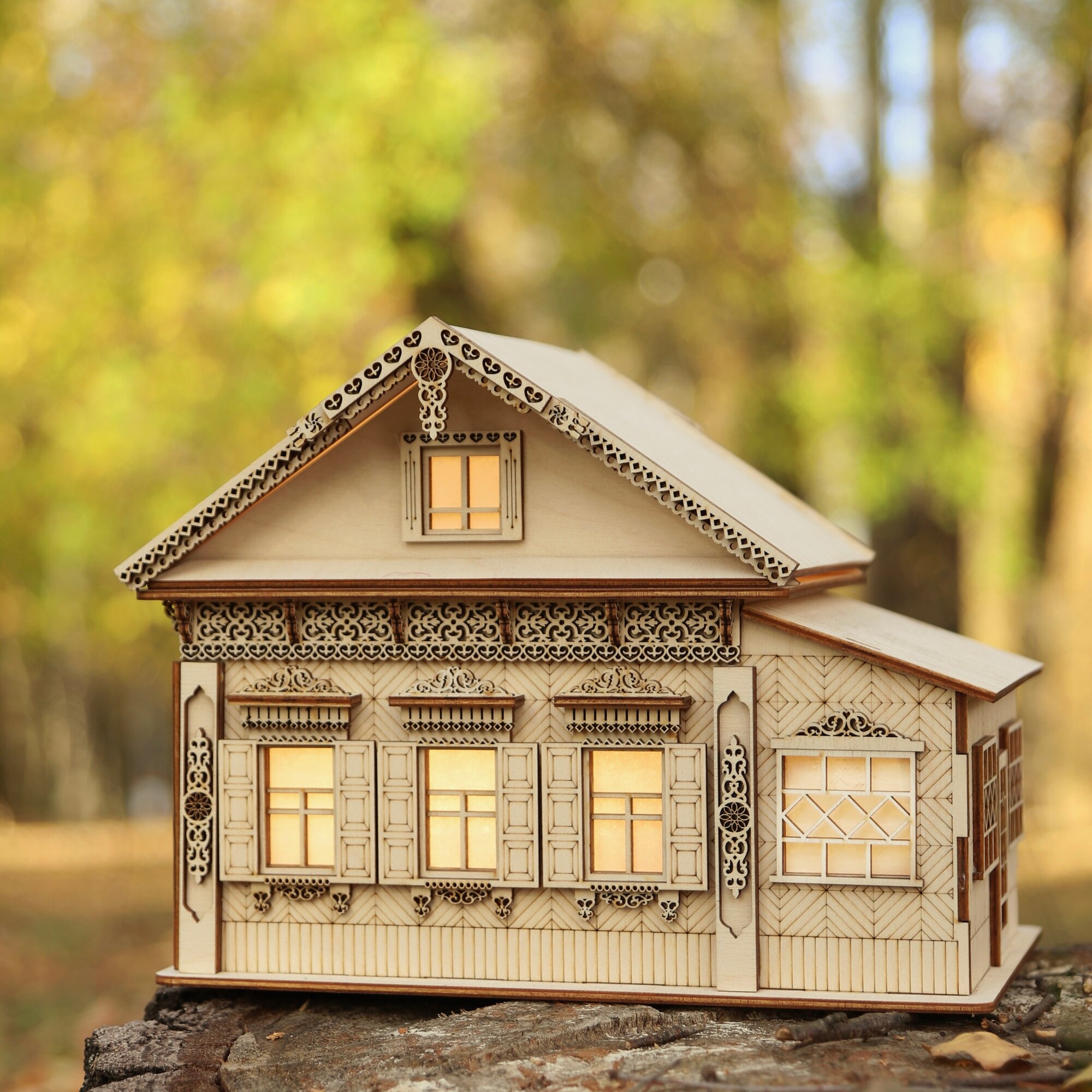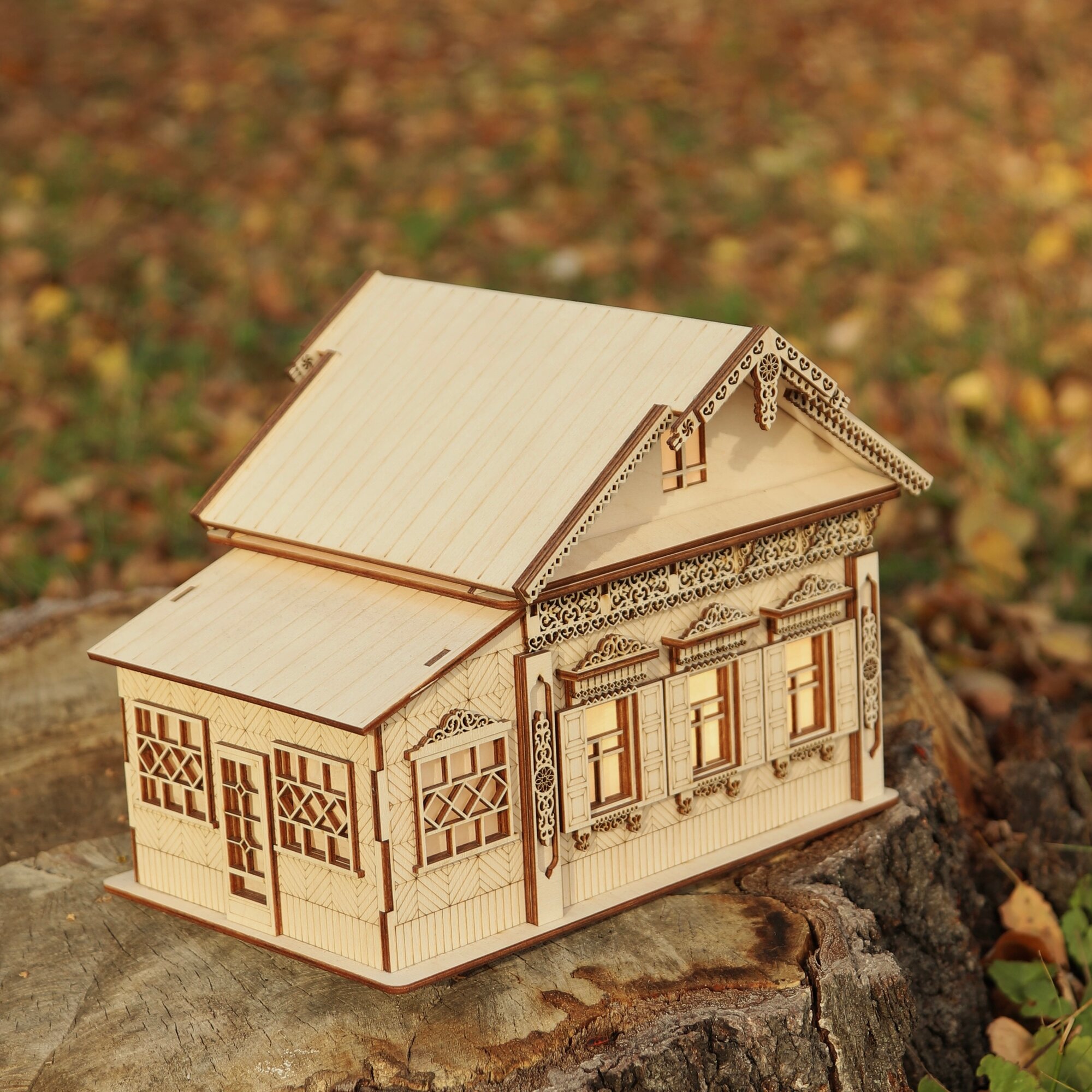 Домик конструктор из дерева с подсветкой "Бабушкин домик" / заготовка для творчества