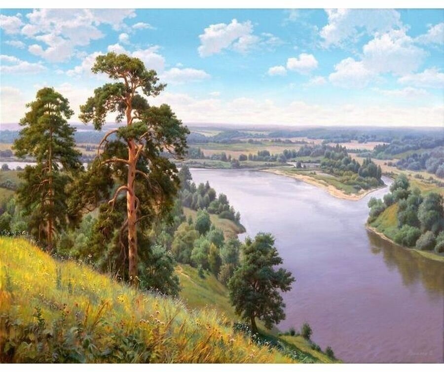 Вышивка крестиком 46х56 - Речка, лес, природа интересное: