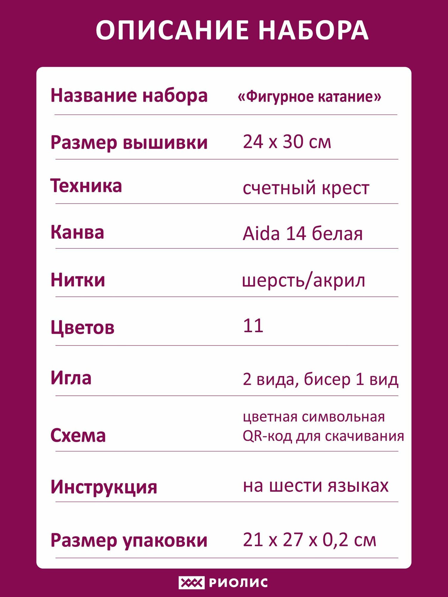 Набор для вышивания крестом Риолис, вышивка крестиком "Фигурное катание, 24*30см, 2202 интересное:
