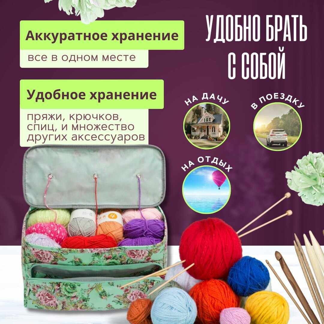 Органайзер для рукоделия, пряжи, спиц. Клубочница для вязания, пряжи. Проектная сумка для вязания интересное:
