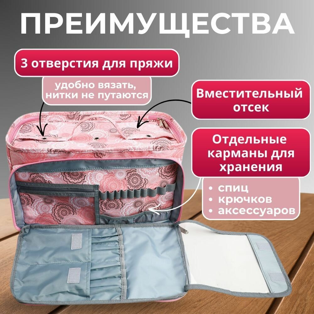 Органайзер для рукоделия, пряжи, спиц. Клубочница для вязания, пряжи. Проектная сумка для вязания XXL розовая интересное: