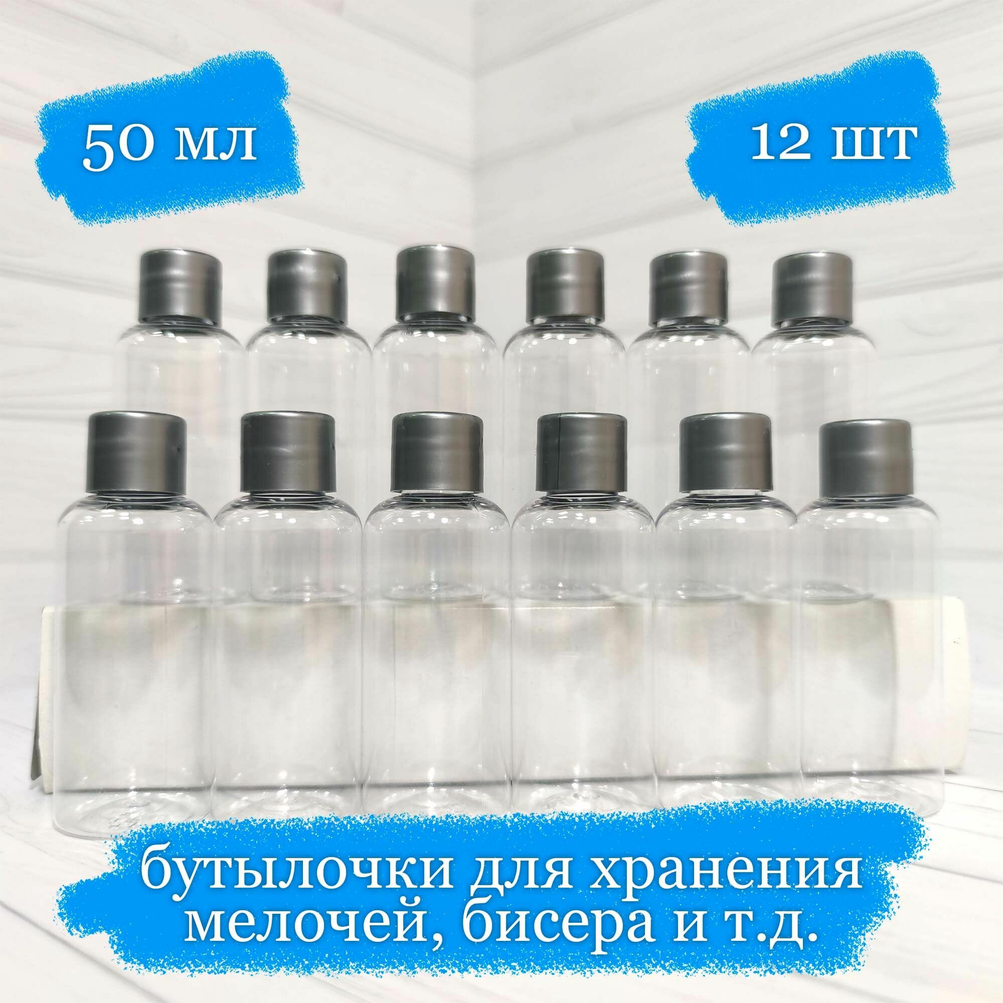 Бутылочки пластиковые для хранения с серебристой крышкой - 50 мл - 12 шт интересное: