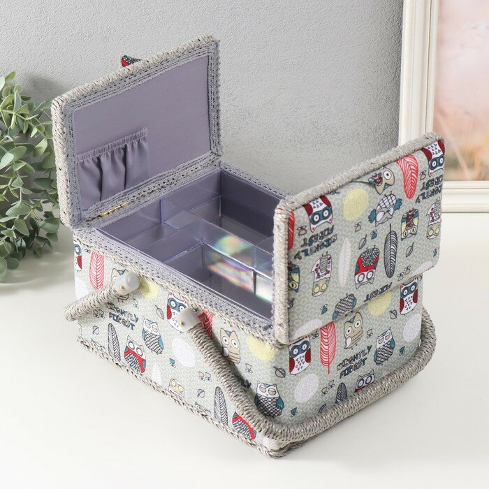 Купить Шкатулка для рукоделия и шитья «Совы и перья», хранение ниток, иголок, мелочи, 19×26×14.5 см