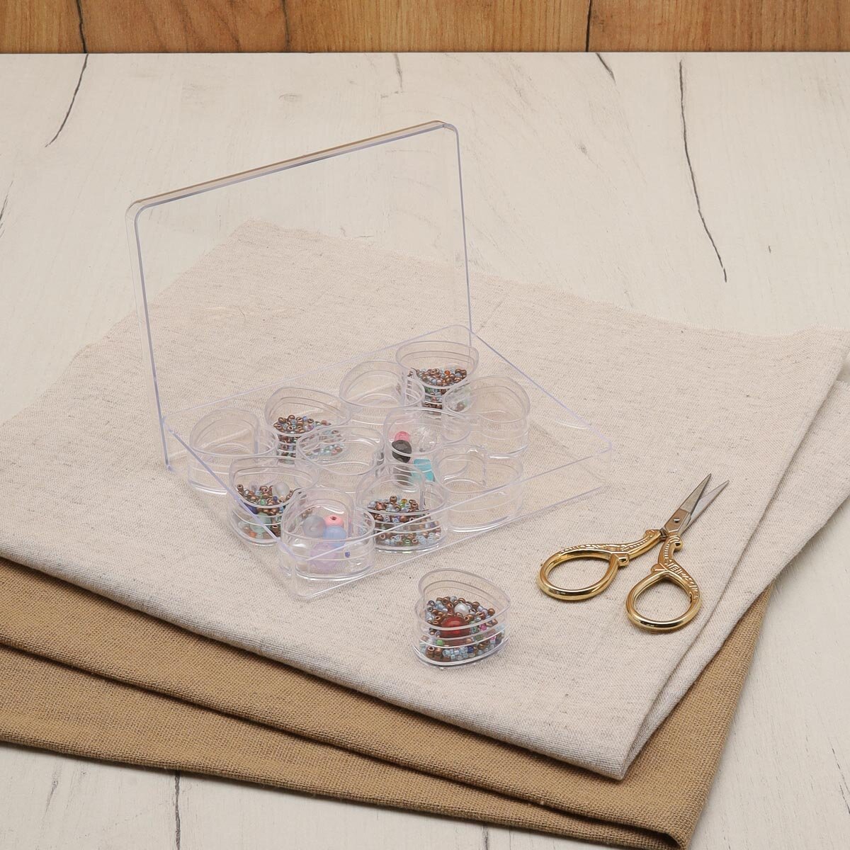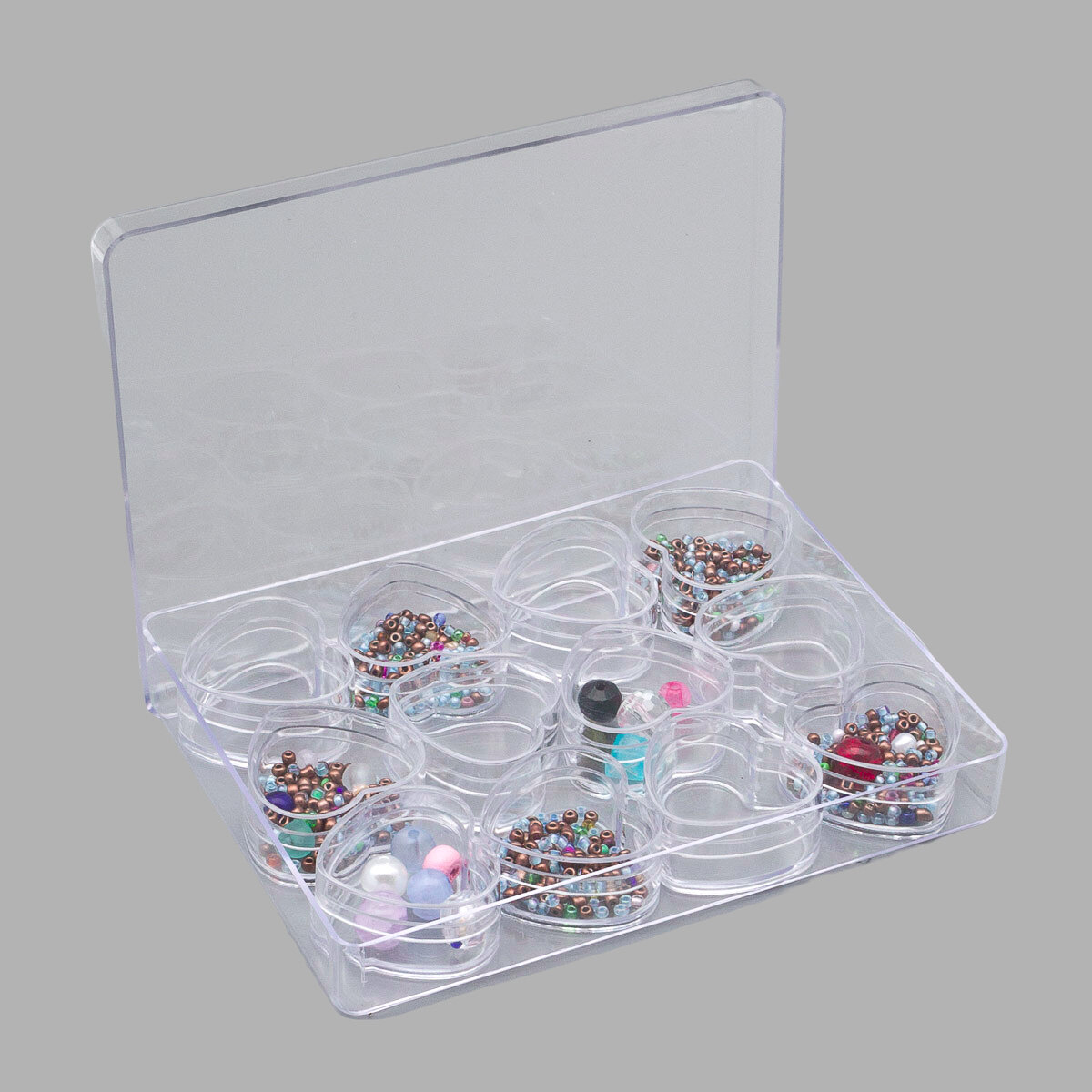 Купить Контейнер для бисера и мелочей с 12 баночками, 12,5*9,5*1,8 см, пластик, Айрис